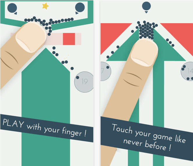 In ogni area di gioco fuoriusciranno da una piccola botola, rappresentata da un semplice cerchio, numerosi pallini, che tenderanno a cadere verso il basso, seguendo le classiche regole della gravità. Con la pressione di uno, o più dita, sarà possibile creare altri cerchi di colore grigio, sui quali i pallini andranno a rimbalzare. Così facendo, sarà possibile creare un percorso, più o meno accidentato, per trasportare i pallini a destinazione. Con il passare dei livelli sarà sempre più difficile far giungere i pallini a destinazione, anche perché aumenteranno le distanze tra punto di partenza e d’arrivo, oltre ad intensificarsi gli elementi di disturbo. Infatti, mentre le forme geometriche verdi possono essere toccate dai pallini, così che di fatto serviranno come aiuto, le piattaforme rosse dovranno assolutamente essere evitate. Inoltre, per poter ottenere il punteggio più alto possibile sarà necessario raccogliere le tre stelle presenti all’interno dell’area di gioco, oltre a salvare il maggior numero di pallini.