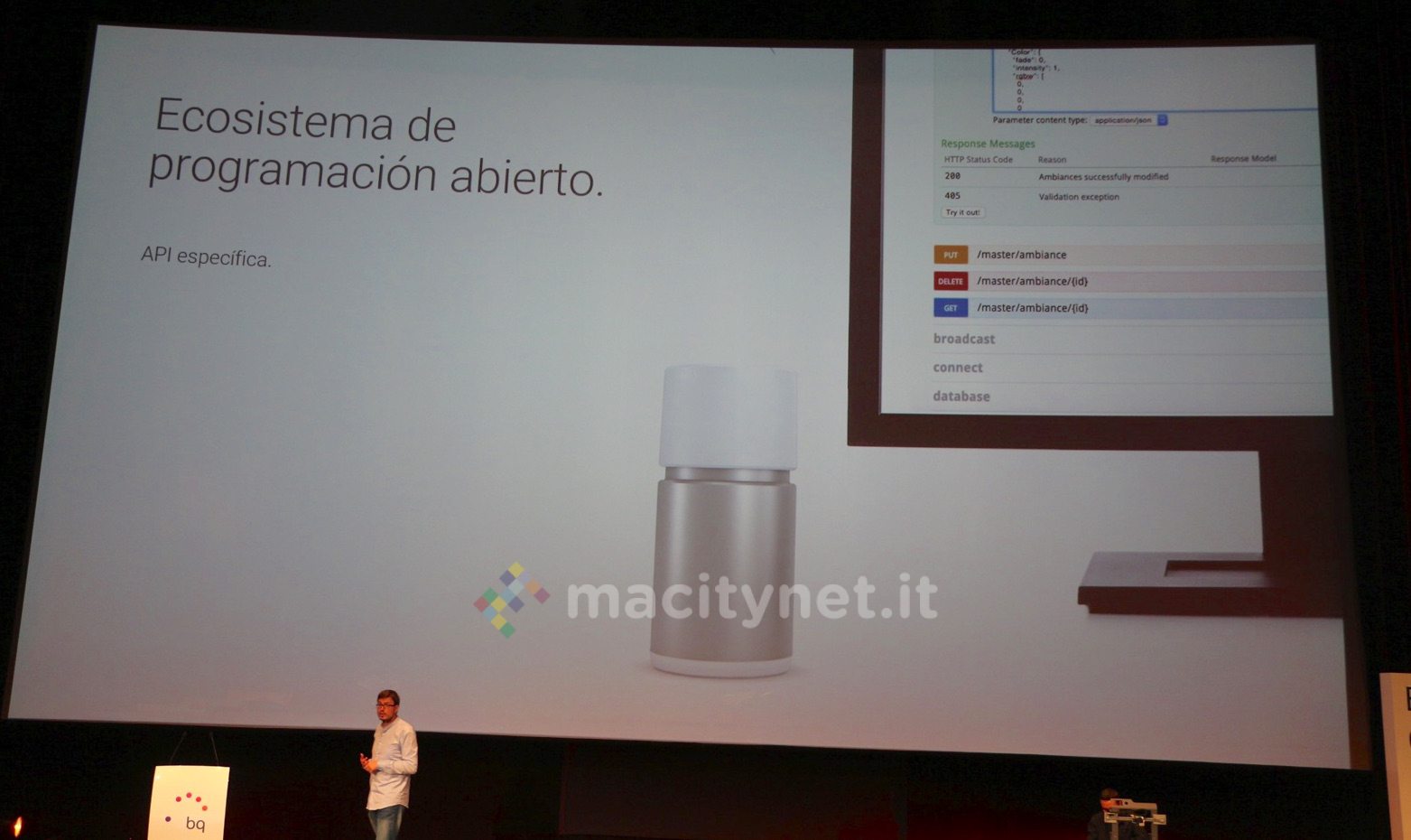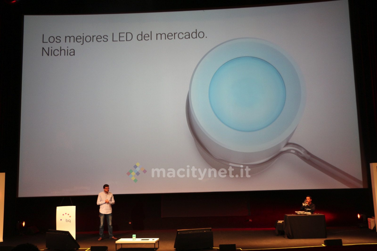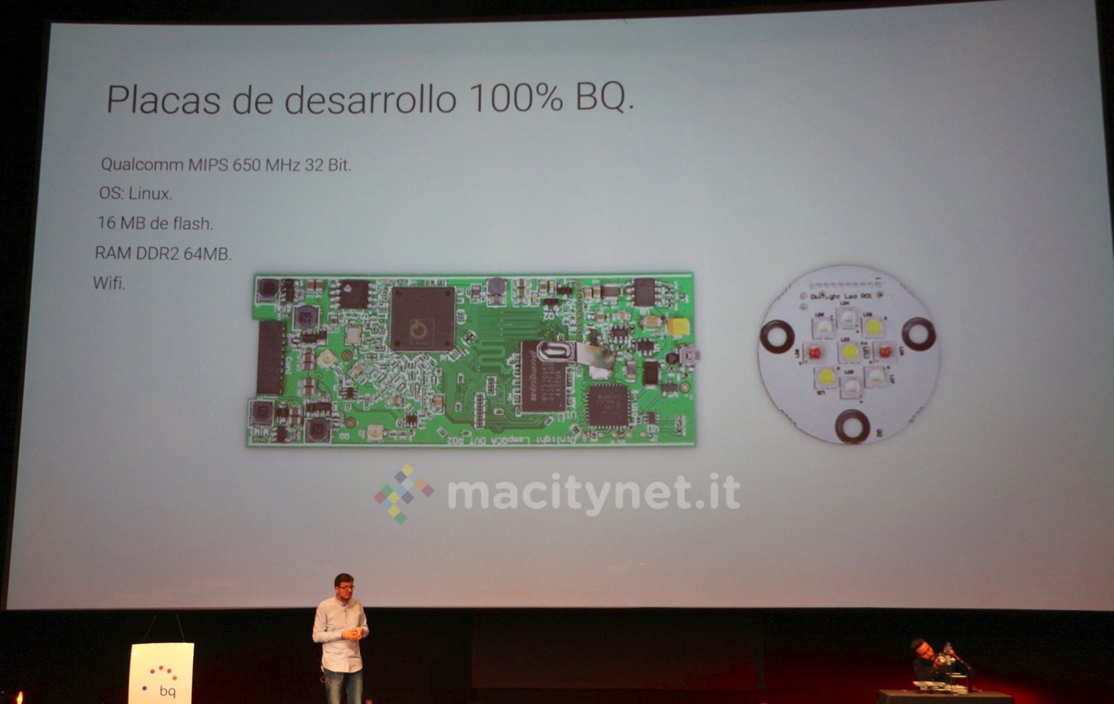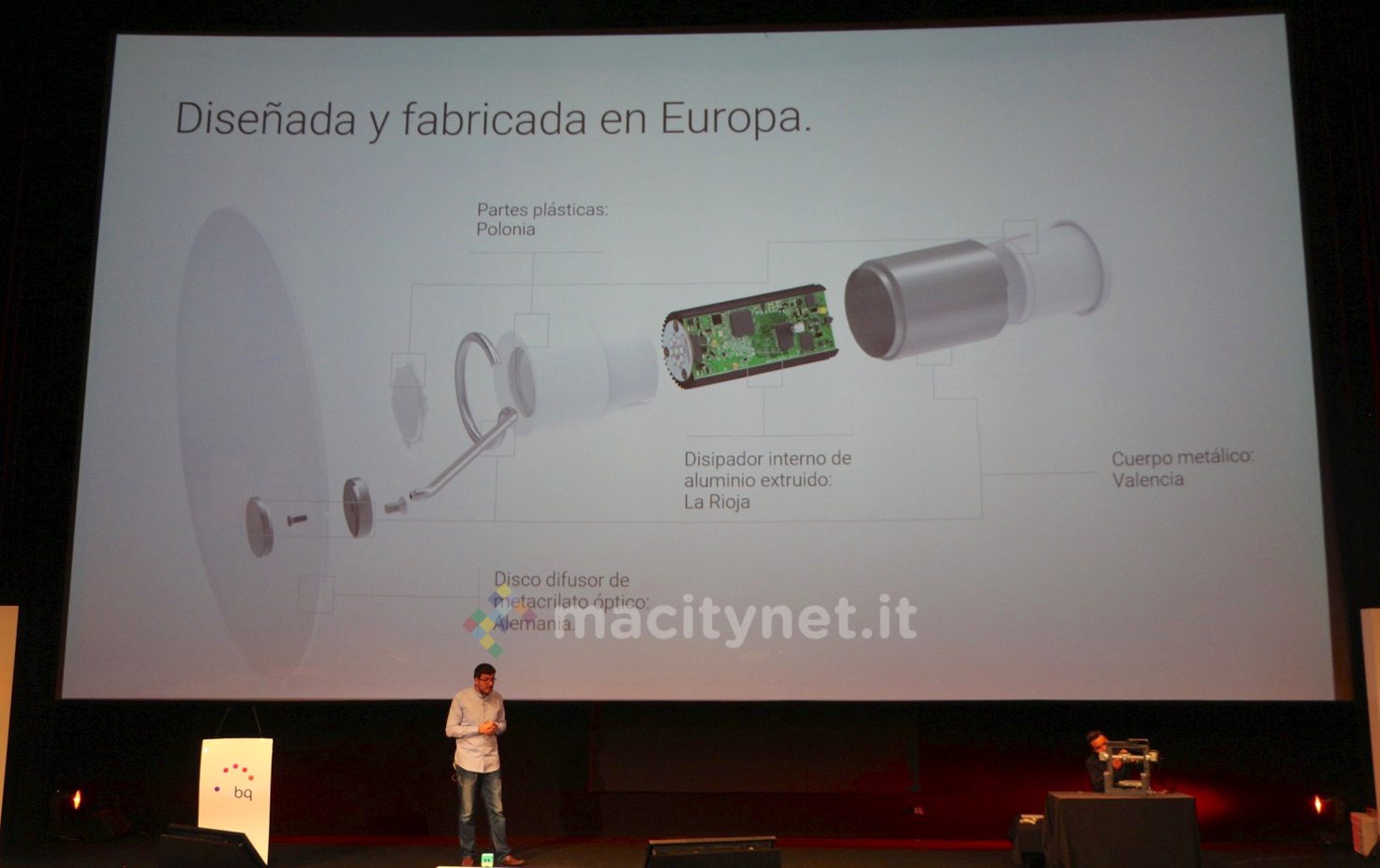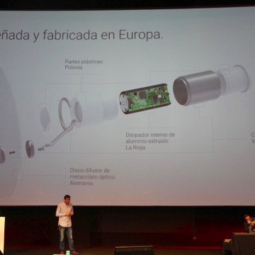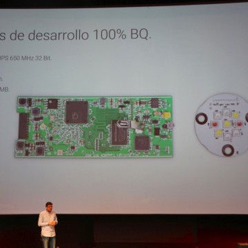 Il prodotto è stato illustrato nel corso dell’Open Day di Madrid e il CEO di BQ ha mostrato come sia il risultato di una ricerca sui materiali e componenti che ha coinvolto l’intera Europa: il corpo metallico è costruito a Valencia, il dissipatore interno è di LaRoja, il diffusore (il disco semitrasparente) in metacrilato ottico è prodotto in Germania e le parti in plastica-policarbonato in Polonia: ovviamente il prodotto finale viene assemblato in Spagna.