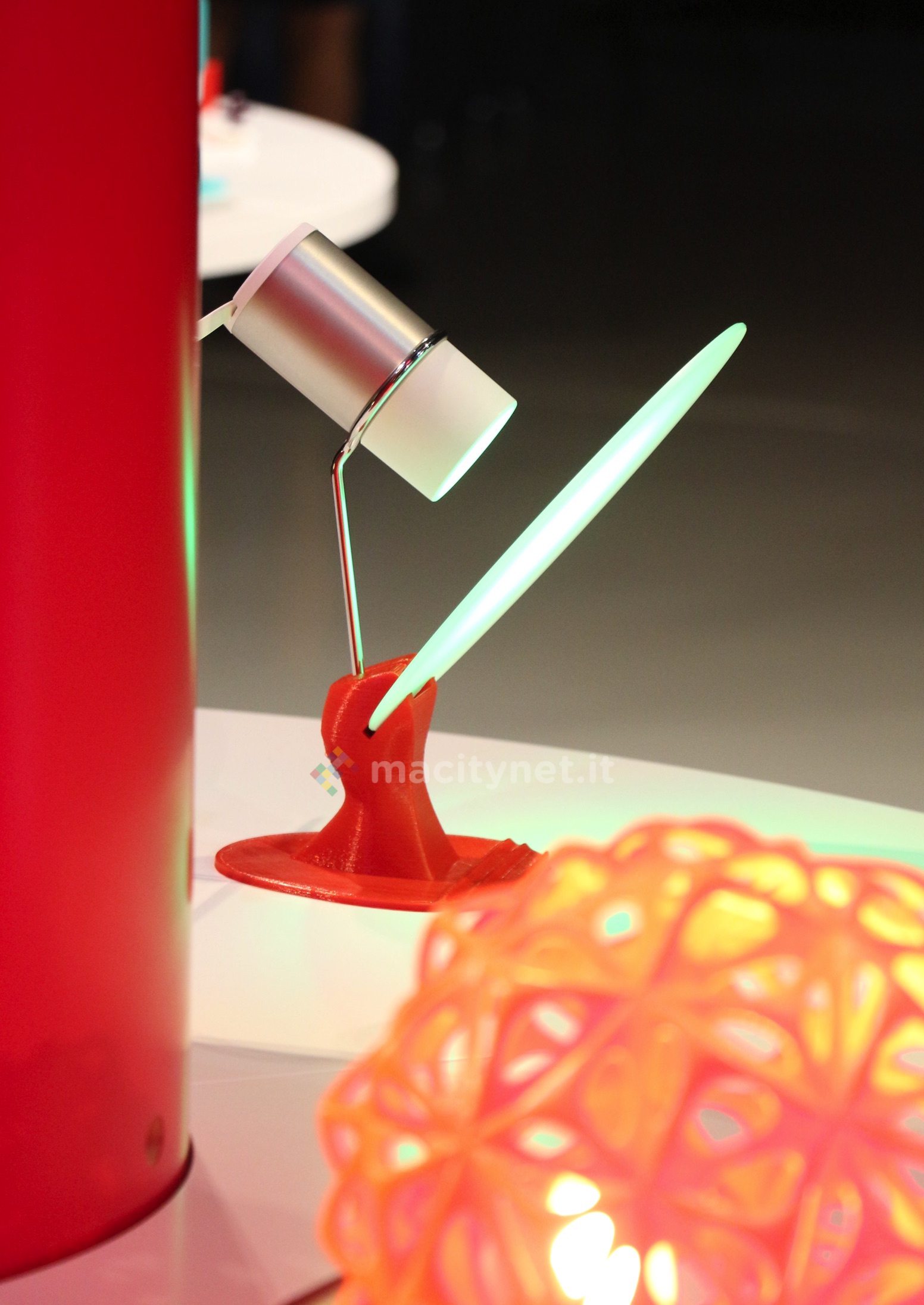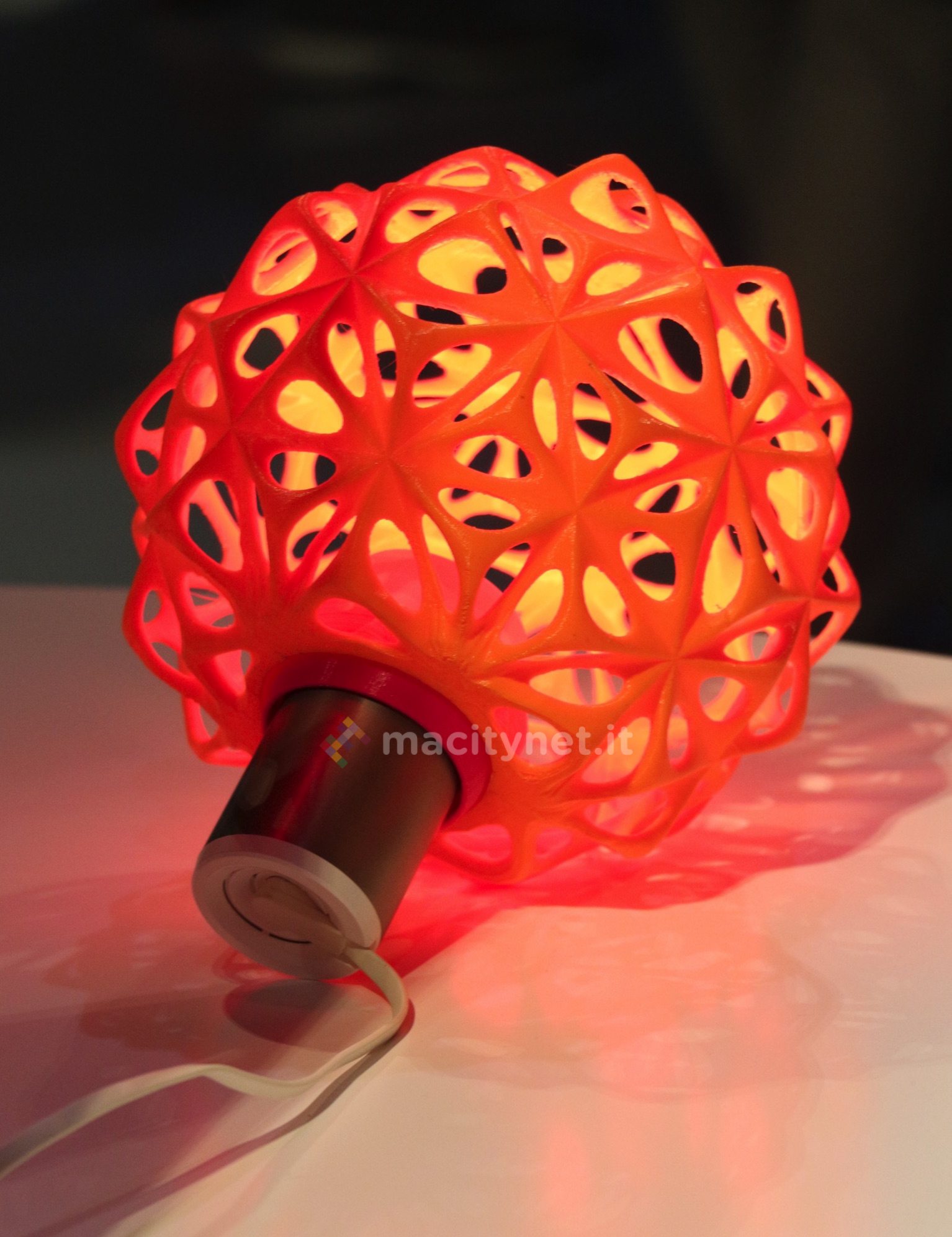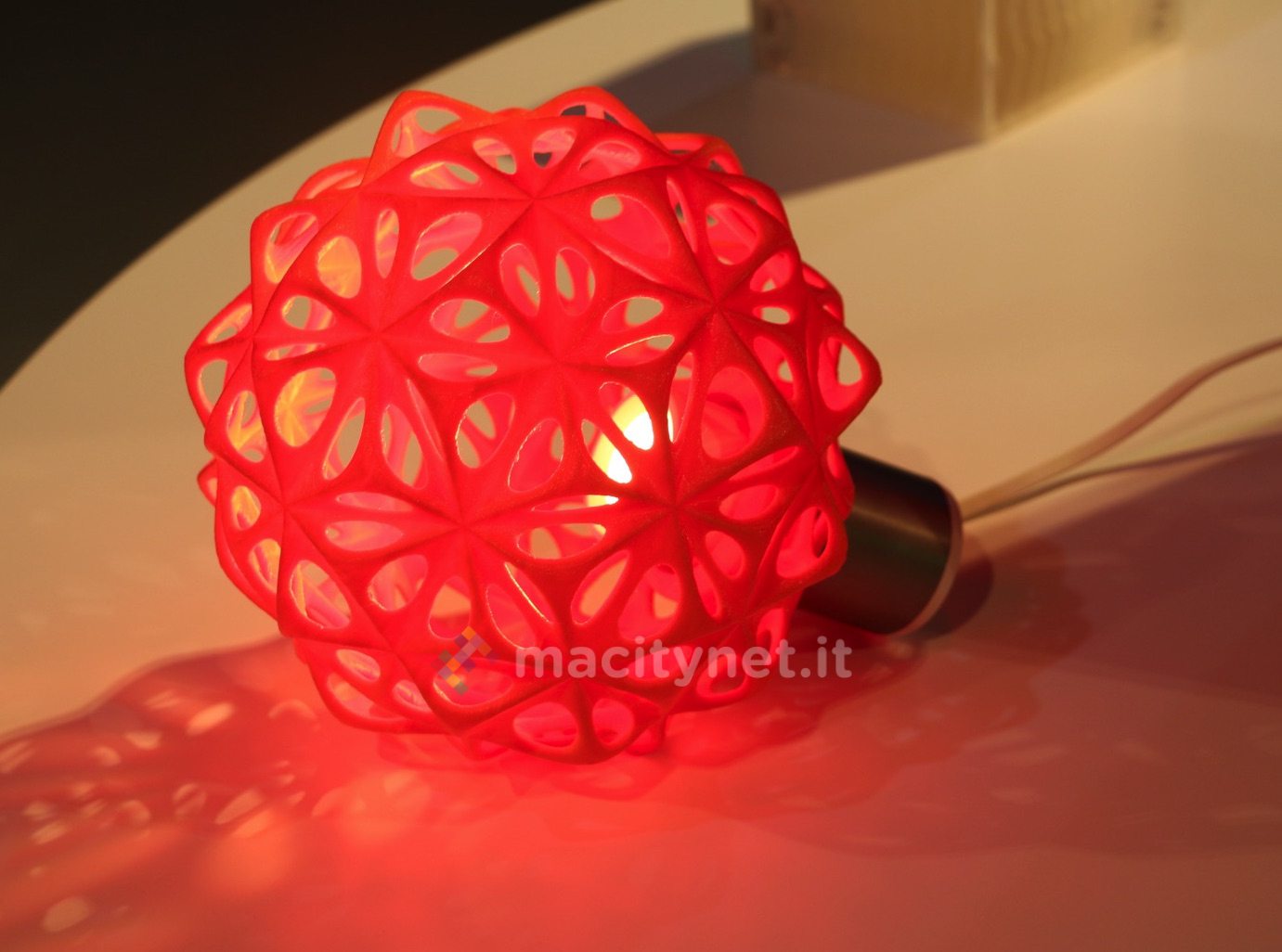 Non si tratta di una semplice lampada ma di una applique con un elemento di diffusione in metacritalato che potete montare direttamente a muro. Se avete fantasia e disponibilità di una stampante 3D come quelle prodotte da BQ potete personalizzarla con forme di qualsiasi dimensione e colore per creare oggetti illuminanti assolutamente originali (vedete alcuni esempi nella galleria qui sotto).