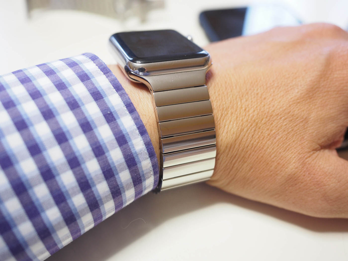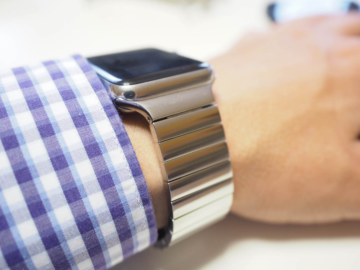 Quale dei due, Brushed o Polished, sia preferibile è questione di gusti. In rapporto all’orologio, specificatamente al nostro Apple Watch con cassa in acciaio, si accostano ugualmente bene, ma noi tendiamo a preferire il Brushed. Come accennato la satinatura è molto leggera e non colpisce l’occhio quanto la versione Polished, sia perchè generalmente è più minimalista con la sua inferiore capacità di riflettere la luce, sia perchè può essere confuso con il Link. Preferiamo il Brushed anche perchè è meno delicato del Polished che tende a rigarsi, come tutti i bracciali di questo tipo (e come le stesso Apple Watch) e prende molto meno le impronte digitali.