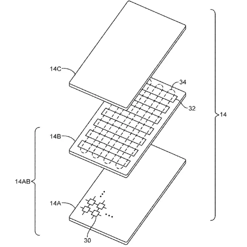 Per realizzare lo schermo flessibile con feedback tattile il brevetto Apple descrive l’integrazione di piccoli motori, vibratori o attuatori piezoelettrici sotto la superficie dello schermo. Sempre nello stesso brevetto viene illustrata anche la possibilità di installare speaker e microfono sotto al display. Questa soluzione non è da sottovalutare: permette infatti di costruire dispositivi più sottili, privi di griglie e fori e di rendere l’intero dispositivo più resistente all’acqua.