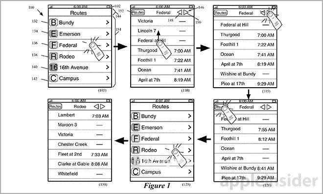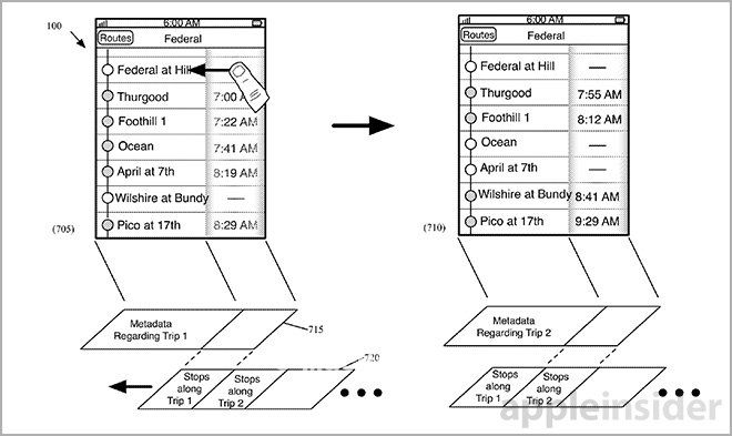 Questa nuova interfaccia sarà interamente basata su semplici menù dinamici, da espandere per visionare tipo di servizio, percorso e fermate effettuate da quel determinato mezzo di trasporto pubblico. Le prime immagini relative al brevetto mostrano dei menù a scomparsa, da espandere con un semplice click, in modo simile all’applicazione to-do Clear. Gli utenti potranno, ad esempio, selezionare un particolare percorso, effettuare la ricerca per nome o in base alla propria posizione attuale, e visualizzare immediatamente i dettagli di viaggio e altre informazioni pertinenti. Nelle tabelle dinamiche che appariranno a schermo, saranno mostrate le informazioni sul percorso e gli utenti potranno visualizzare gli orari dei bus, o altri mezzi di trasporto, che interesseranno quel tratto per tutta la giornata. In alternativa, query di ricerca basate sugli orari potranno mostrare i prossimi viaggi che riguardano una particolare destinazione; un diverso sistema di ricerca permetterà di verificare i viaggi da e verso una data fermata, a prescindere dagli orari delle varie corse.