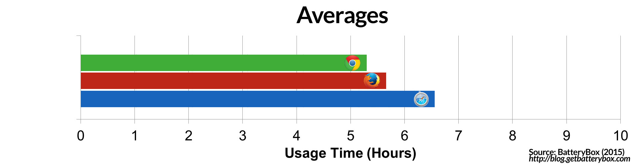 Safari è ottimizzato specificatamente per l’uso con i portatili e, quando possibile, riduce al minimo la potenza di elaborazione necessaria, al punto che navigando sugli stessi siti ed eseguendo le stesse operazioni è possibile ottenere fino a un’ora in più di batteria rispetto a quanto possibile con Chrome o Firefox. Lo dimostrano alcuni test di Batterybox che ha eseguito una serie di prove visualizzando filmati su YouTube, navigando su Reddit, visualizzando filmati in streaming, navigando su Twitter e FaceBook, componendo email su servizi quali Gmail e Hotmail, eseguendo ricerche su Google, Bing e DuckDuckGo. Il Mac utilizzato è stato un MacBook Pro Retina 13” ripristinato alle condizioni di fabbrica, senza nessun altro programma aperto.