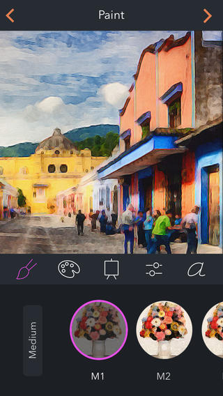Una volta scelto lo stile generale del “quadro”, potremo scegliere una superficie simulata, che potrà donare all’opera un aspetto diverso, come legno, tela, carta ed altri sfondi. L’applicazione Brushstroke consentirà di modificare anche le caratteristiche dell’immagine, come la saturazione, il contrasto, l’esposizione, opzioni tipicamente fotografiche, per poter sistemare l’immagine ed adattarla allo stile pittorico.