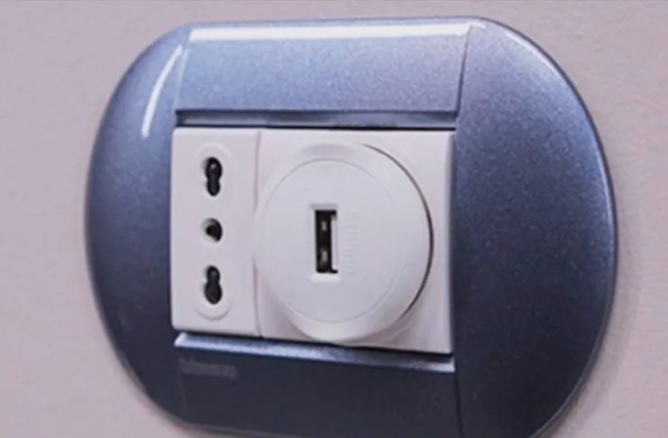 Come dicevamo la sua forma permette di mettere una porta USB a parete con un alloggiamento millimetrico e coordinato con tutte le prese di tipo Schuko (Utilizza una spina di tipo 10A compatibile con tutte le prese 10A, 16A e P30), diventando un oggetto di design facente parte del punto presa a muro.
