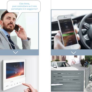 Alla presentazione per la stampa Bticino mostrava i suo Classe 300X in connessione con un classico punto esterno con telecamera della Classe “Sfera”, tra le più vendute nel suo ambito. L’interazione con l’apriporta, cancelli, irrigazione e controlli della casa era solo simulata ma tanto bastava per capire le potenzialità della soluzione sia nell’uso diretto attraverso lo schermo da 7” che nell’uso “connesso” attraverso uno smartphone iOS o Android.