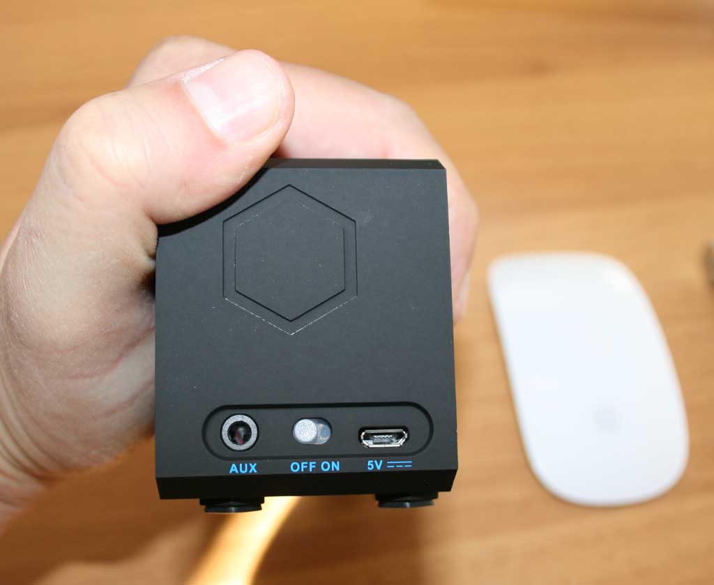 Sulla parte superiore troviamo i pulsanti essenziali: volume e Bluetooth; a destra l’AUX, il pulsante on/off e l’attacco USB per la ricarica (la luce sullo switch on/off cambia colore da rosso a verde quando la ricarica è completata). Il dispositivo entra automaticamente in standby quando non è utilizzato (se non usato per oltre 50 giorni, la batteria imposta una modalità di protezione che rende necessario lo spegnimento e la riaccensione dal pulsante). E’ un prodotto interessante, soprattutto per chi viaggia con dispositivi come telefoni e tablet ed è alla ricerca di uno speaker piccolo e leggero, in grado di amplificare decentemente l’audio. Il rapporto prezzo/prestazioni è ottimo.