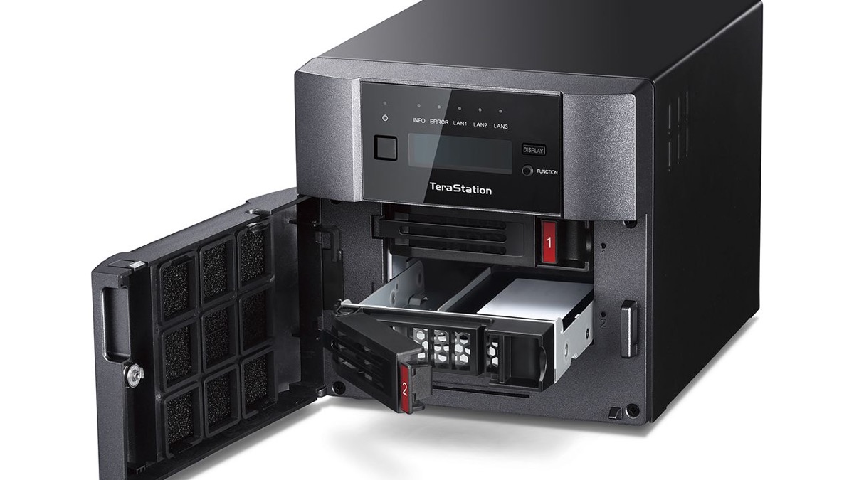 Buffalo presenta TeraStation 5210DF (TS5210DF), un NAS a due alloggiamenti equipaggiato con due unità SSD e connettività 10 GbE. E’ progettato per i professionisti che hanno necessità di spostare e condividere ingenti quantità di dati e che desiderano velocizzare al massimo i loro flussi di lavoro: grazie alle unità SSD e alla connettività 10 GbE è infatti in grado di garantire transfer rate oltre i 550 MB/s.