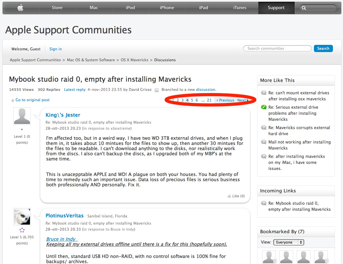 La situazione comunque rimane ancora confusa: nelle pagine dei forum, sia di WD che di Apple, continuano ad essere pubblicati messaggi utenti che hanno subito disastrosi eventi con la perdita di dati: anche se la maggior parte di questi utilizza dischi esterni e software WD, molti altri lamentano problemi simili anche con unità di altri costruttori. In pratica non è ancora chiaro se a causa di questo bug i software WD possono rinominare e ripartizionare anche unità esterne di altri costruttori, oppure se esiste qualche altro problema con software/dischi fissi di altri costruttori.