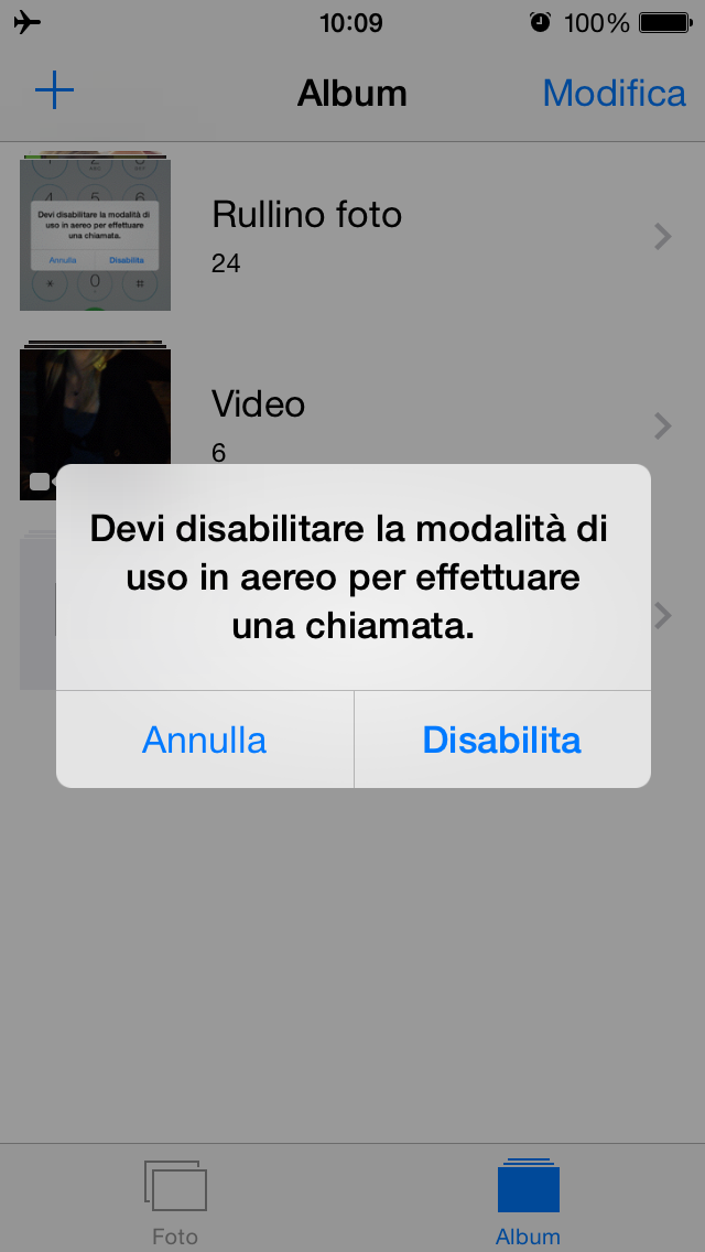 Il bug funziona con qualsiasi applicazione aperta prima di bloccare lo schermo: nei test abbiamo provato con iBooks scoprendo di riuscire poi a leggere qualsiasi libro, con Immagini visualizzando qualsiasi album ed anche con Telefono effettuando poi nuove chiamate dove, come in Messaggi, è necessario disabilitare la modalità aereo.