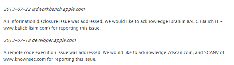 Ottenere una citazione e un riferimento sul Apple Web Server Notifications può essere considerata una sorta di ricompensa da parte dei ricercatori e di chi si impegna giorno dopo giorno nella scoperta di bug sicurezza del sito sviluppatori Apple, contribuendo non solo alla protezione dei dati degli sviluppatori e dell’azienda, ma anche indirettamente alla tutela dei consumatori e dei clienti della Mela che hanno scelto i dispositivi di Cupertino.