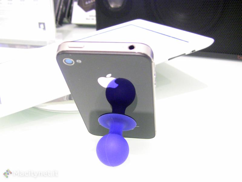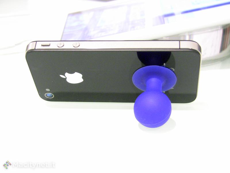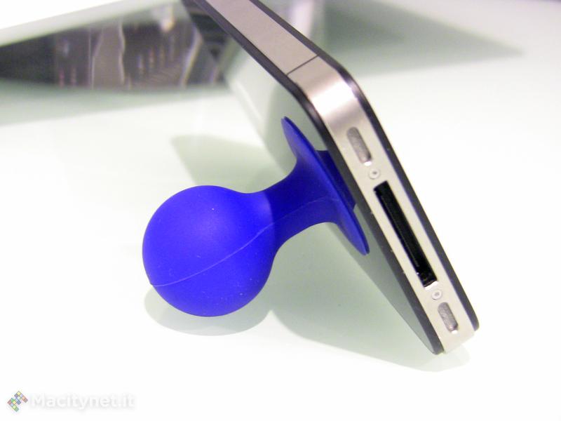 Realizzato in morbido silicone è molto simile ad un pomello ma nella parte piana ha una tenace ventosa che permette di collocarlo nel punto giusto del vostro lettore MP3 o smartphone per conferirgli la giusta angolazione. Se usato in coppia può servire anche a sollevare e permettere una maggiore circolazione dell’aria pure sotto un portatile o un iPad.