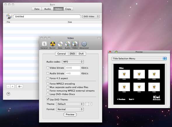 Non mancano opzioni per la creazione di Video-CD e DVD-video (il programma permette la creazione di semplici menu interattivi e alcuni temi base), per la copia disco su disco e la conversione di vari formati ( tutti quelli supportati da QuickTime e da eventuali plug-in).