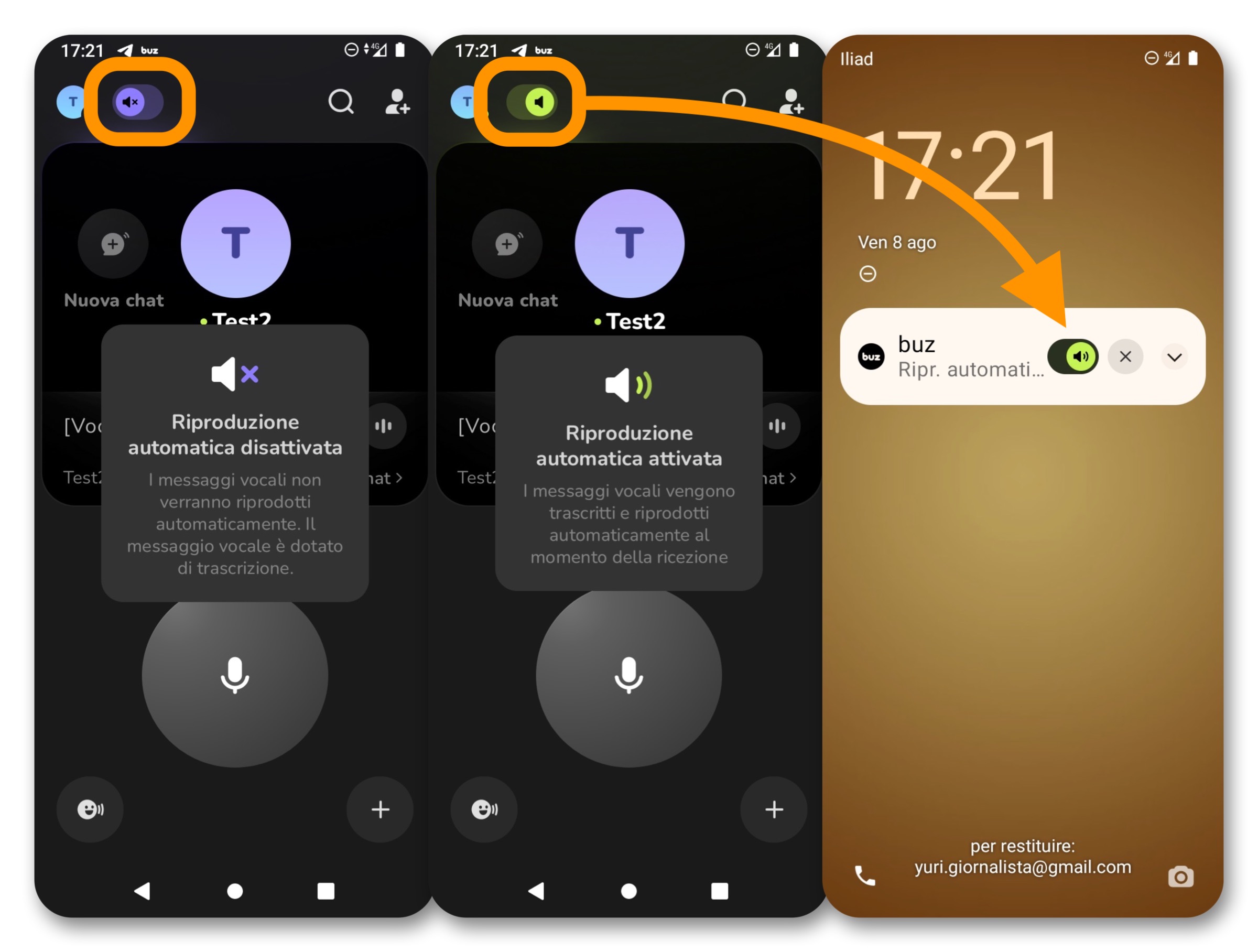 Viceversa si può disattivare la riproduzione automatica anche dalla schermata di blocco così se ci si trova in riunione, al cinema o in un posto in cui non si può parlare, anziché ascoltare il vocale sarà possibile leggerne la trascrizione che l’app include automaticamente nella sezione di chat ed eventualmente rispondere da lì digitando un tradizionale messaggio (che verrà poi semplicemente notificato con un suono).