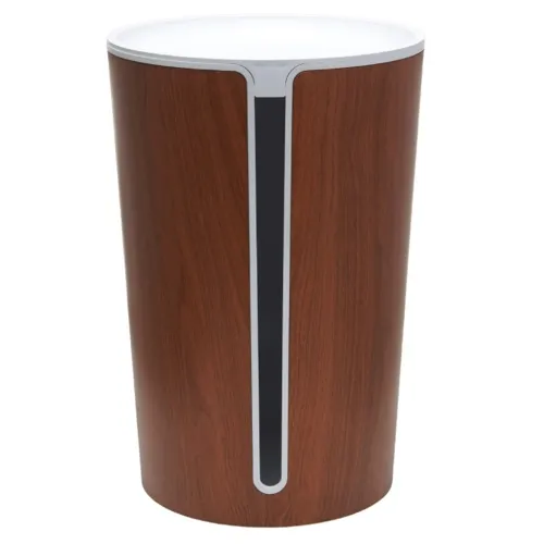 CableBin di BlueLounge ha un aspetto ricercato: è abbellito da un rivestimento laminato di legno, che si adatta a qualsiasi ambiente e arredamento. E’ alto 42 centimetri e con un diametro di 27 centimetri: nel lato superiore un coperchio permette di accedere all’interno per riporre i cavi e anche le prese multiple, mentre sempre dal coperchio tramite una piccola apertura richiudibile, è possibile far fuoriuscire solo i cavi necessari per alimentazione e ricariche. Il coperchio superiore offre poi una superficie esterna liscia, fungendo così da pratico vano in cui riporre smartphone e altri dispositivi digitali di piccole dimensioni per la ricarica.