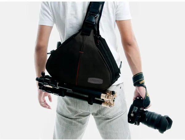 La borsa è utile in più di una situazione come ha spiegato Macitynet nella recensione che vi invitiamo a leggere (click qui) per scoprire le nostre impressioni. L’interno è personalizzabile grazie ai divisori con velcro; possiamo usarlo per una reflex con obiettivo insieme ad altri due obiettivi piccoli oppure un medio-tele. Una ulteriore tasca esterna può accogliere filtri, batterie, pompetta, pennello, portafoglio; le schede SD ed il telecomando eventualmente trovano spazio nelle mini tasche interne. Sulla base si può anche agganciare un treppiede, ai lati ci sono due tasche per cellulare, per una bottiglia d’acqua o altro, sul retro un’ultima tasca permette di estrarre, all’occorrenza, la copertura anti-pioggia che troviamo inclusa nella confezione assieme alla borsa.