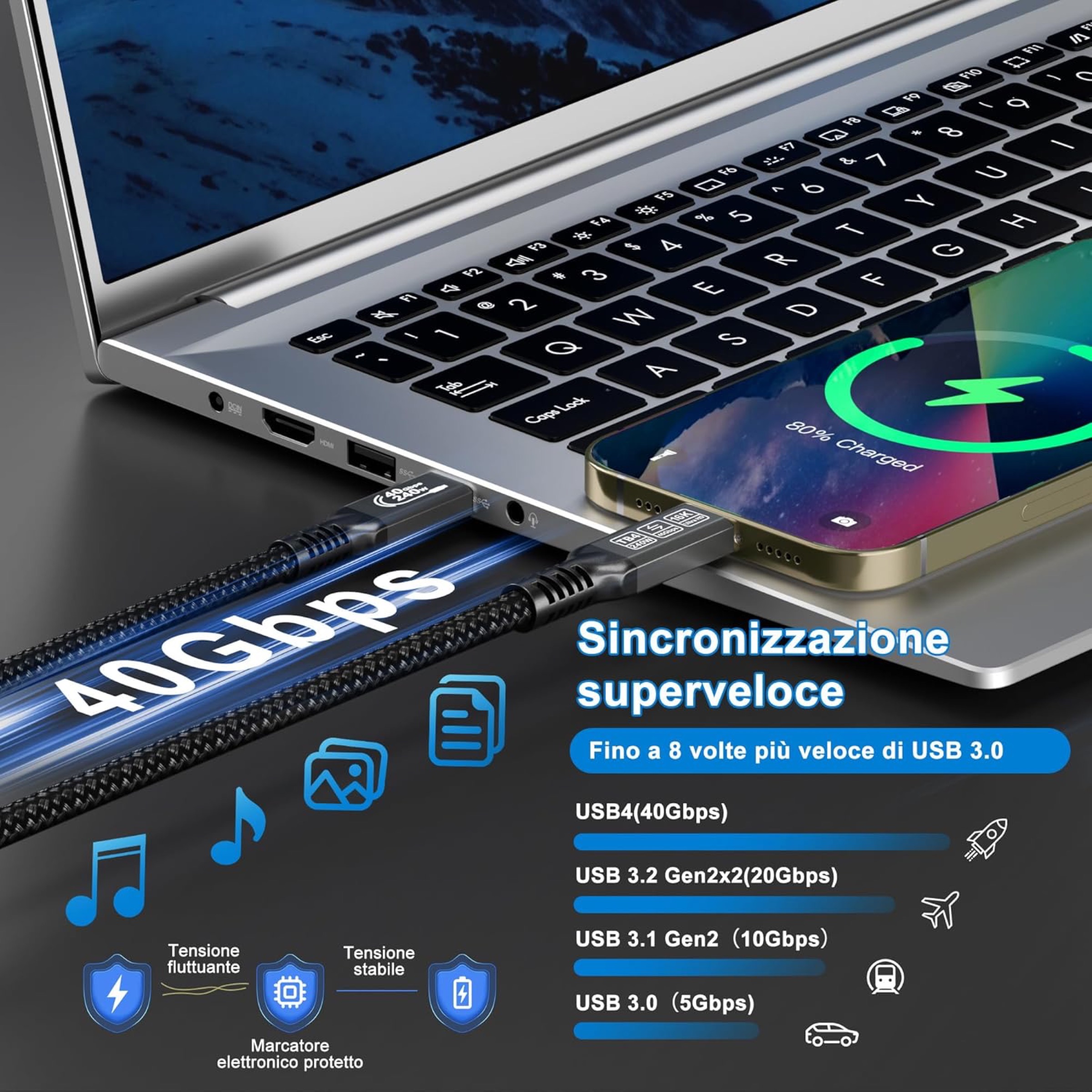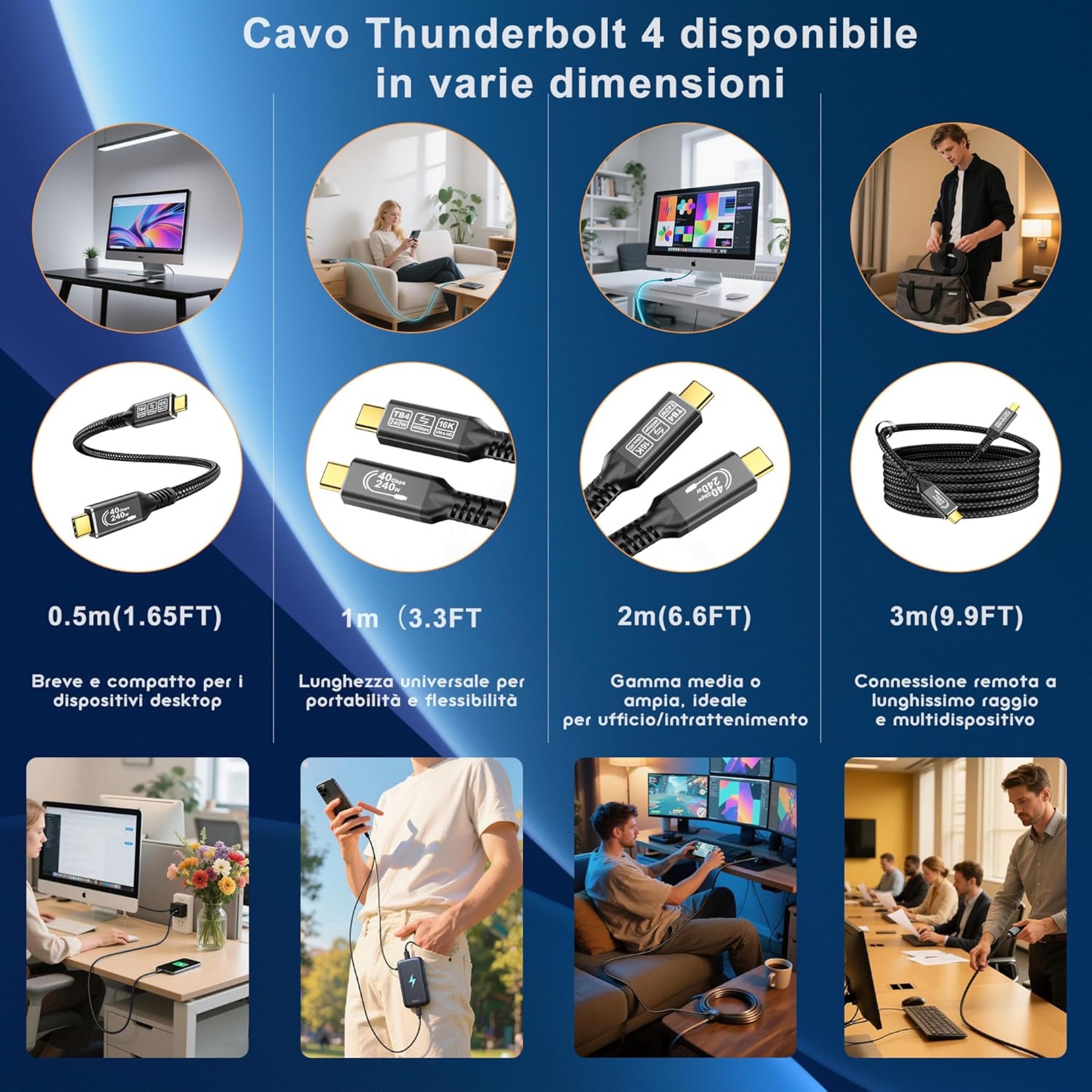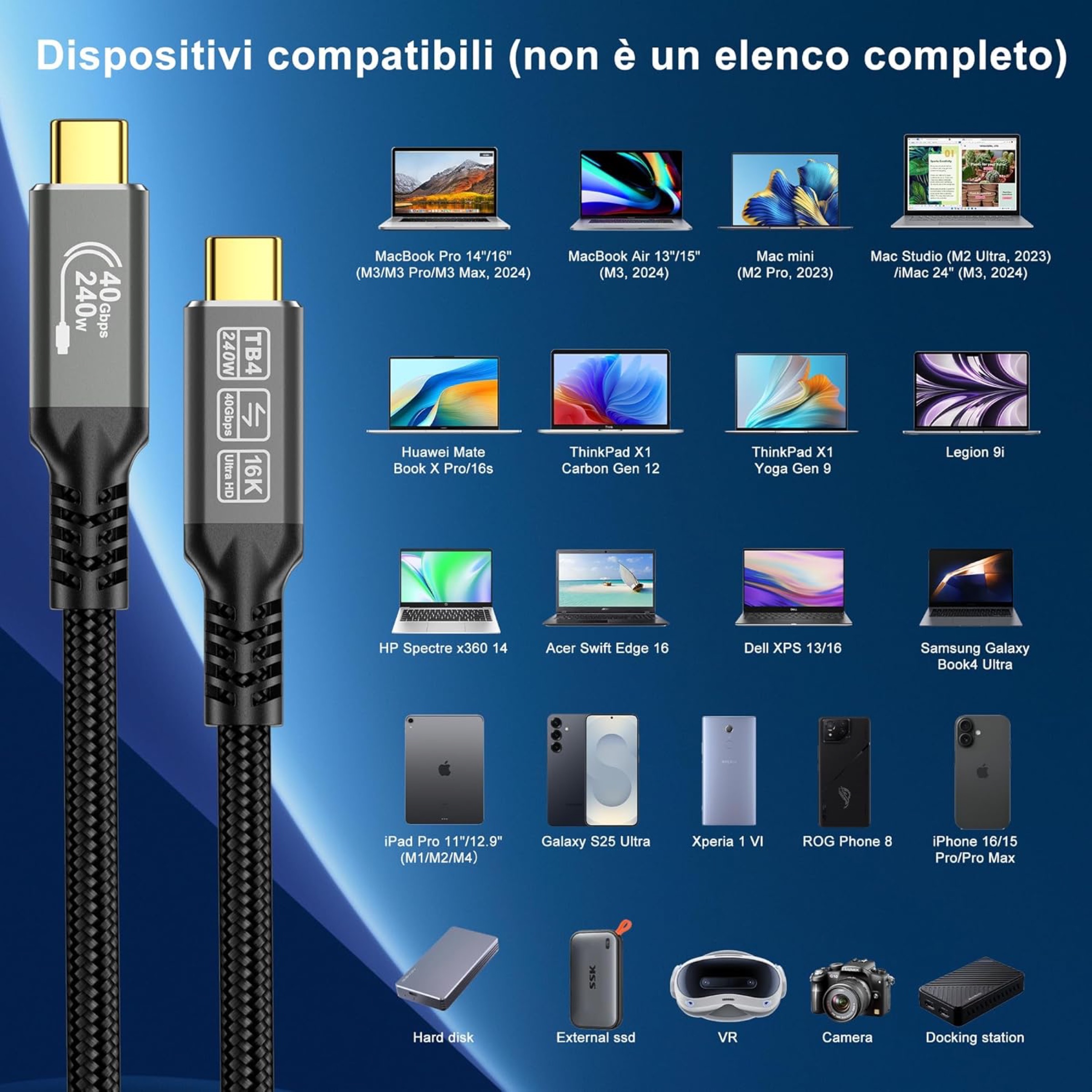 Il cavo supporta inoltre lo standard Thunderbolt 5, garantendo retrocompatibilità con dispositivi di generazione precedente.