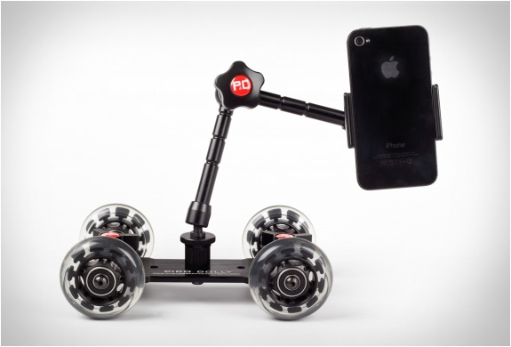 Camera Table Dolly è un treppiede mobile, con sembianze di un piccolo robottino dotato di ruote, che aiuta a creare video professionali con iPhone. Infatti, il robot è dotato, oltre che di ruote, anche di un braccio meccanico, nella cui sommità può essere inserito un iPhone, un qualsiasi smartphone o anche una macchina fotografica tradizionale.