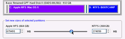 Apple non ha, infatti, previsto la possibilità di ridimensionare la partizione creata con l’Assistente Boot camp; le partizioni del disco rigido possono essere ridimensionate da Mac OS X perdendo però tutti i dati e l’installazione stessa di Windows. Con quest’utility, invece, è possibile ridimensionare le partizioni in modo non distruttivo.
