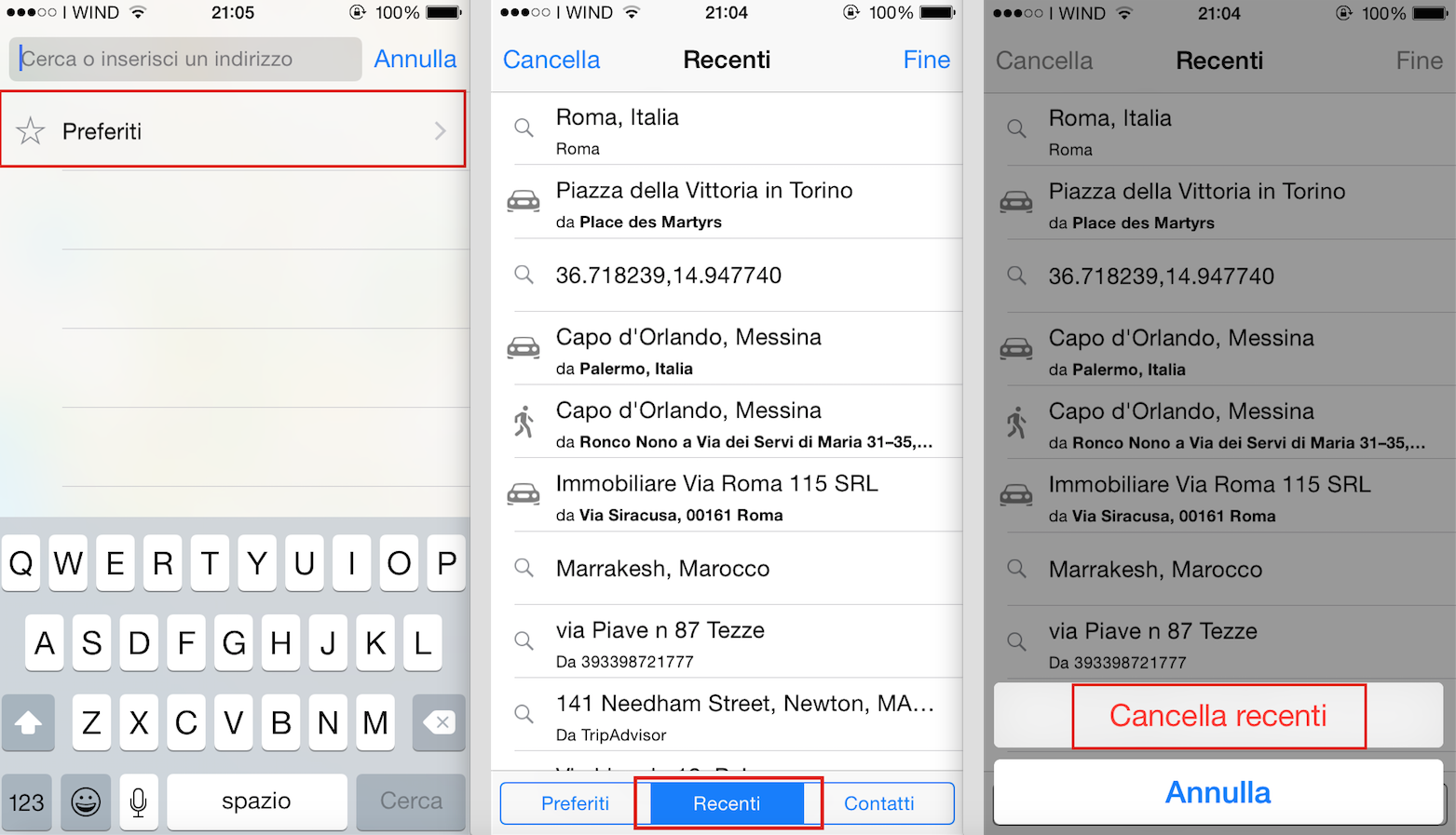 In questo modo saranno eliminate tutte le ricerche effettuate di recente e cliccando nuovamente sul tab di ricerca in Mappe non si avranno più le destinazioni ricercate in precedenza. Naturalmente, questa operazione dovrà essere ripetuta di tanto in tanto, dato che Mappe andrà sempre a registrare le ricerche effettuate dagli utenti.