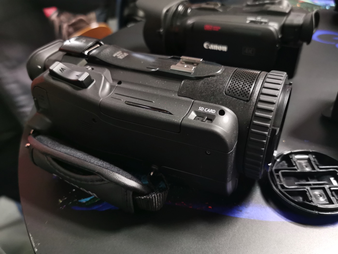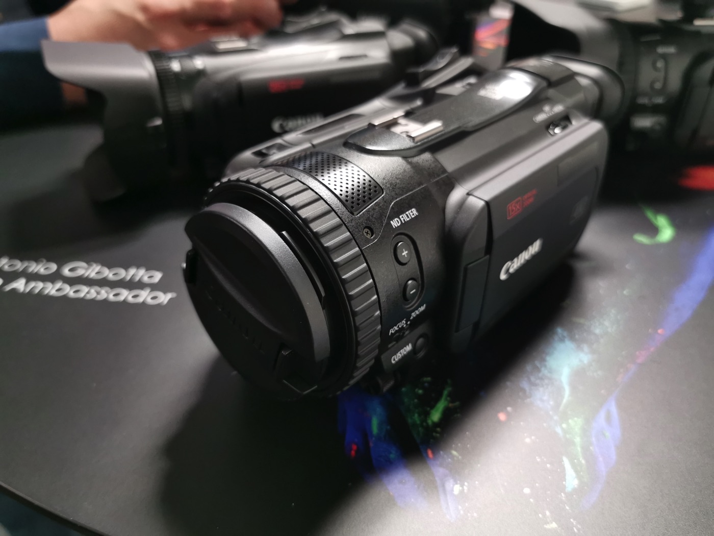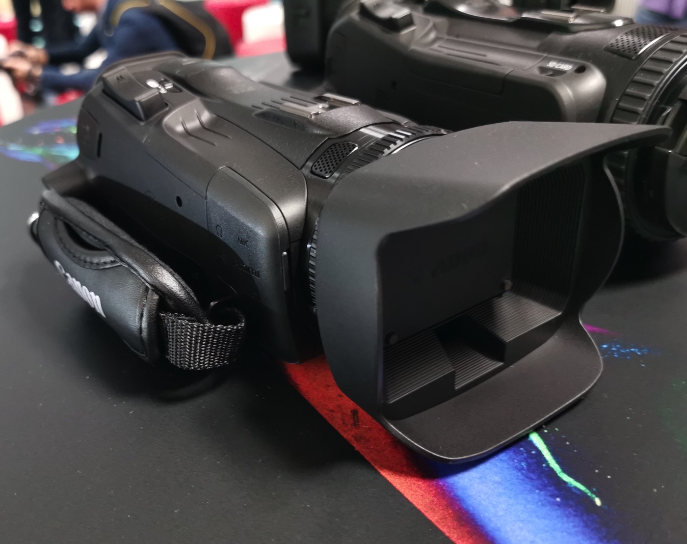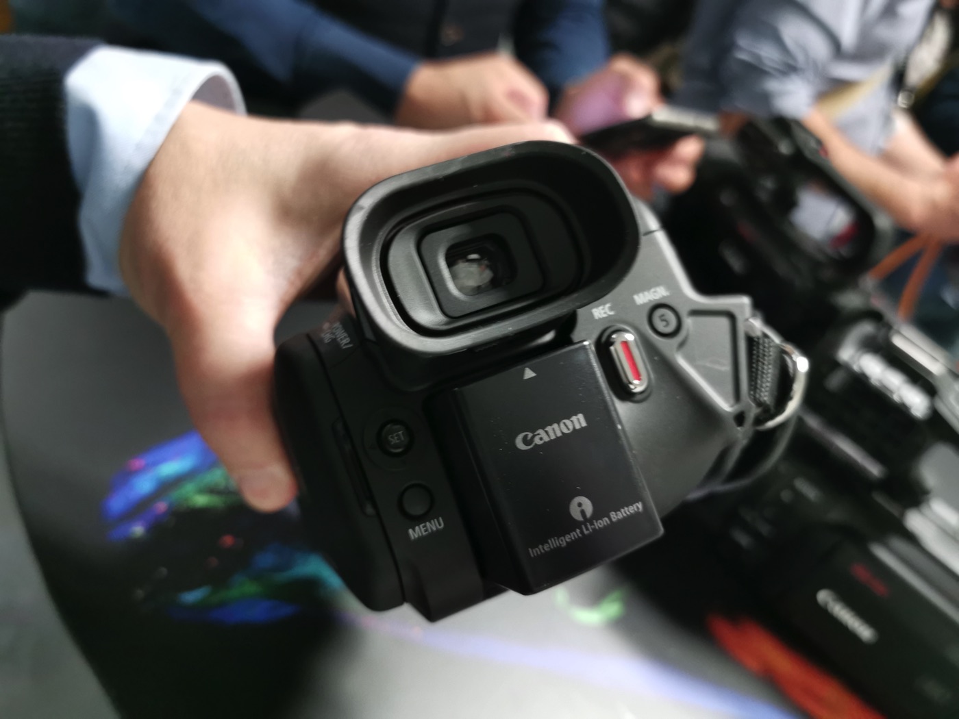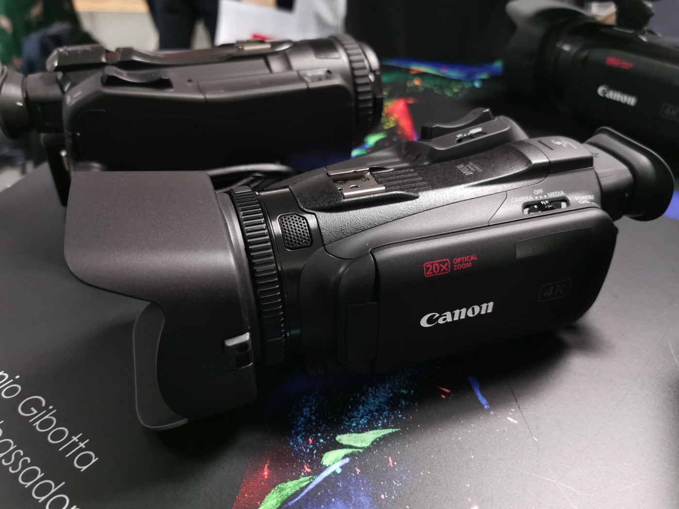 Qui sotto vedete le due videocamere vicine fotografate durante la presentazione di Canon. La HF G50 si riconosce dallo zoom 20x.