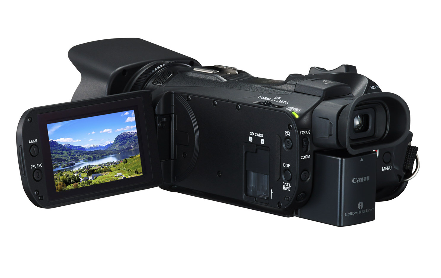 Entrambi i modelli montano un touchscreen capacitivo da 3 pollici (460,000 punti) tramite il quale è possibile regolare tracking, messa a fuoco ed esposizione. Dispongono inoltre di un mirino elettronico orientabile da 0,24 pollici che facilita le riprese in ambienti ristretti o molto luminosi. Entrambe le videocamere supportano inoltre una registrazione doppia o continua grazie a due slot SD.