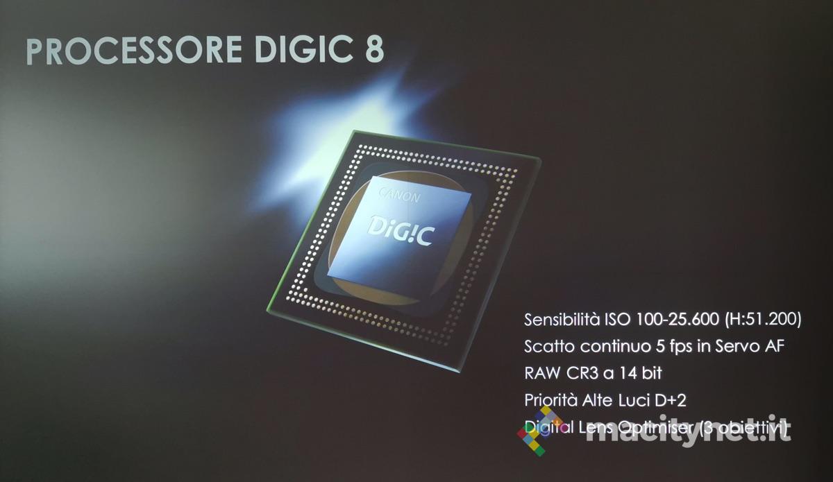 - Sensore CMOS APS-C da 24.1 megapixel e processore d’immagine DIGIC 8