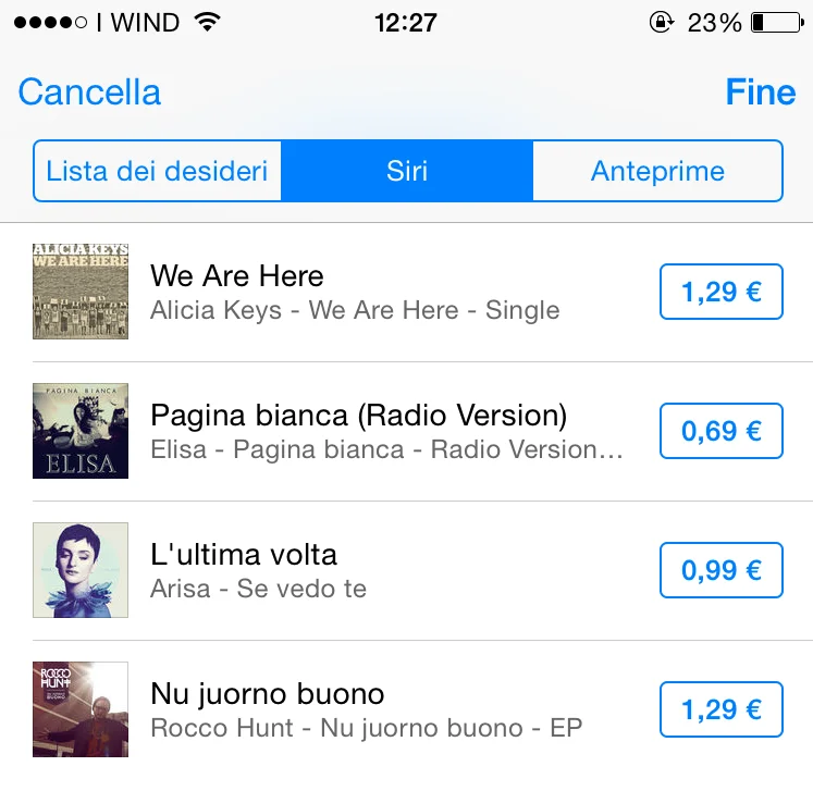 A questo punto si aprirà un ulteriore finestra all’interno della quale sarà possibile scegliere l’opzione Siri. Nella lista che apparirà seguendo queste semplici istruzioni saranno visualizzate tutte le canzone che precedentemente l’utente ha richiesto a Siri di rintracciare. In questo modo, sarà possibile acquistare direttamente da iTunes la musica in precedenza ricercata. La lista, ovviamente, può anche essere cancellata, in modo tale da fare pulizia e mantenerla ordinata con le canzone che si desidera acquistare da lì a poco.