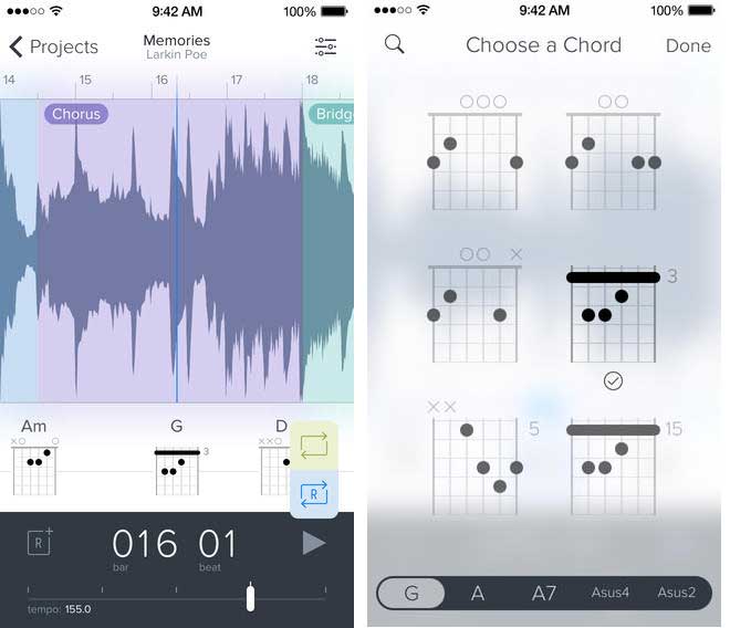 Anche nella versione iOS troviamo l’editor con lo spettrogramma, le funzioni per appuntare aree e creare loop, funzioni per aggiungere accordi, strumenti per l’equalizzazione del brano, filtri per eliminare la voce, funzionalità di sincronizzazione con iCloud per avere gli stessi brani sui dispositvi iOS e Mac. Non sono presenti tutte le funzioni che si trovano sulla versione Mac (anche per limiti intrinseci che impediscono di elaborare sonorità più complesse) ma le più importanti ci sono tutte.