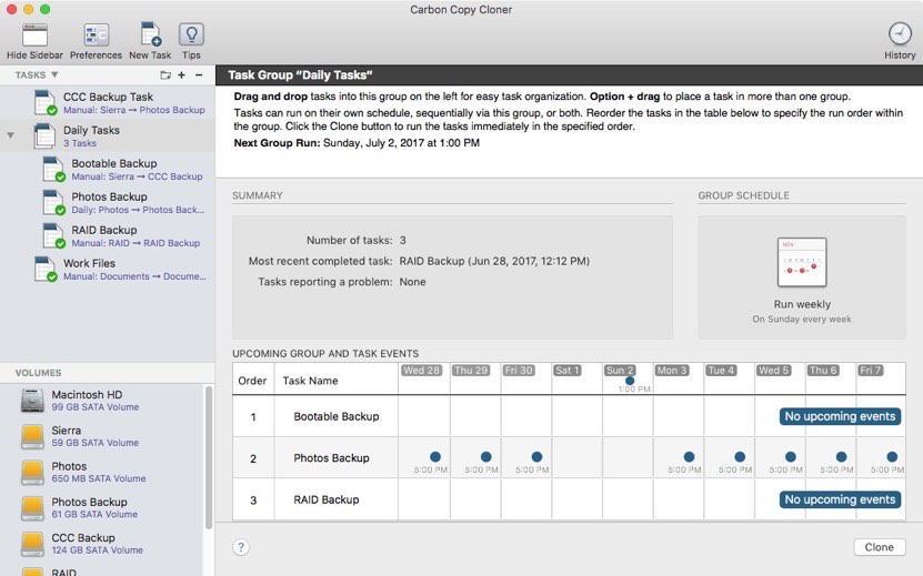 Gli sviluppatori di Carbon Copy Cloner hanno annunciato la disponibilità della versione 5 dell’utility che consente di clonare interi dischi e programmare backup secondo varie modalità. Tra le caratteristiche della nuova versione, la possibilità di raggruppare “task” permettendo di eseguire più operazioni con un solo click.