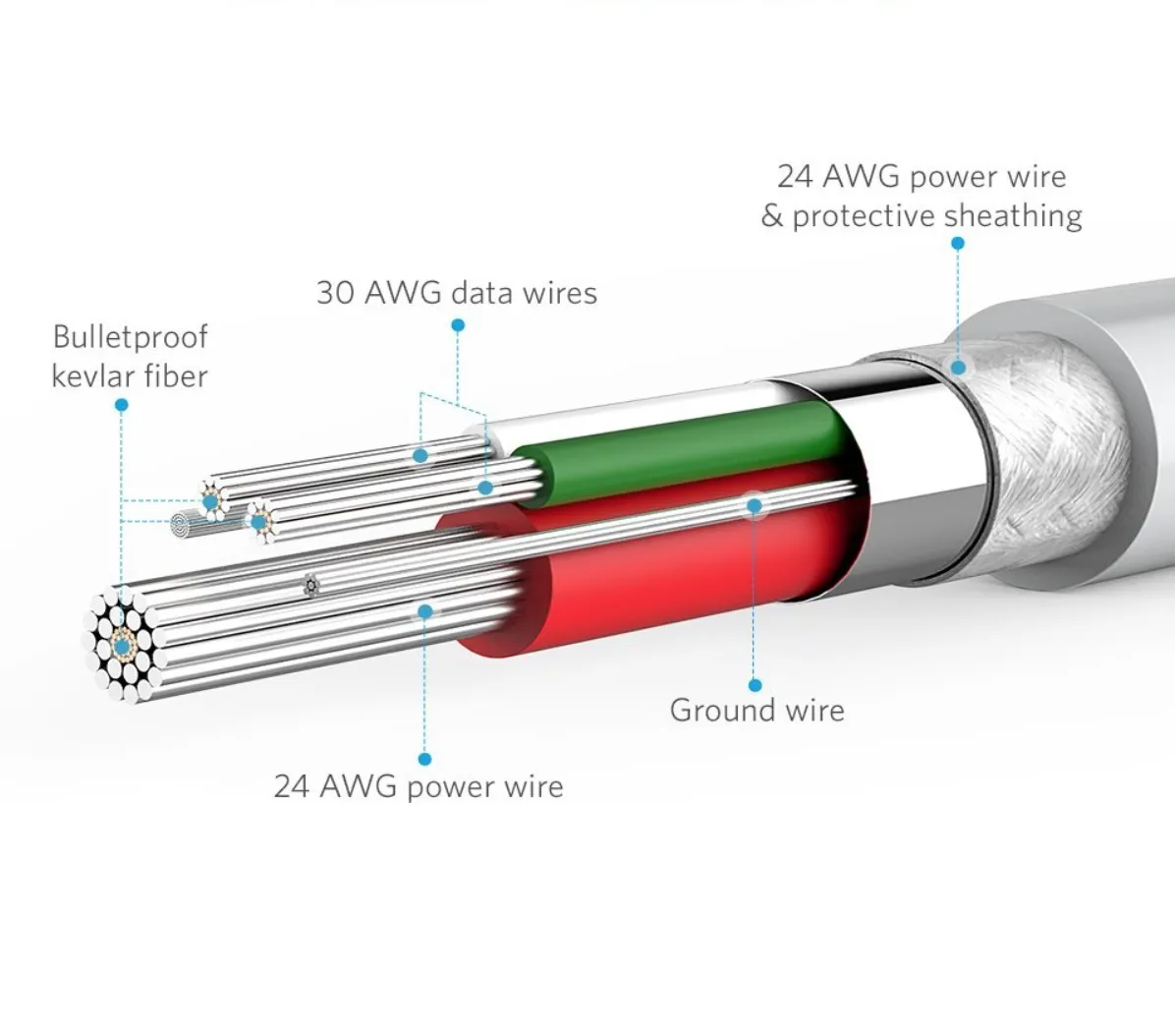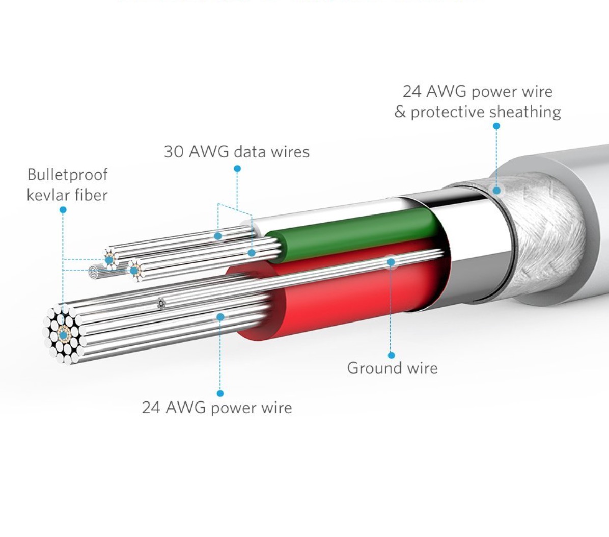 Come anticipato, la parte conduttiva dei cavi è mescolata a filamenti di Kevlar; questo, insieme al rivestimento in plastica, quello in maglia ed alla schermatura dei cavetti, migliora certamente la resistenza allo strappo e scarica parte dello stress che deriva dalla flessione. Oltre a questo, sono in grado di ricaricare un iPhone o un iPad a velocità più elevate persino del cavo Apple, come abbiamo potuto constatare durante i test che vi invitiamo a visionare cliccando qui.