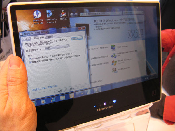Il modello più grande è il TouchPad BC10C che funziona con un Celeron ULV da 1,3GHz. E’ dotato di 2GB di memoria RAM e un disco fisso da 250GB: il costruttore assicura la presenza della tecnologia multi-touch: nello stand abbiamo potuto provare con successo il single touch, mentre il multi touch ha dato esito negativo, in ogni caso ricordiamo che i prodotti non sono ancora completamente finalizzati. Ospita due webcam, una frontale e una sul retro, mentre le misure sono di 25,3×16,8×18,4 centimetri. Il peso non è proprio contenuto: con i suoi 900 grammi potrebbe risultare stancante sostenerlo a lungo con una sola mano. Sarà proposto ad un prezzo compreso tra i 600 e i 700 euro.