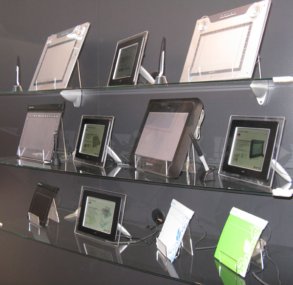 Decisamente più abbordabile il prezzo della interessante tavoletta grafica super semplificata HyperPen Mini. Offre un’area di lavoro con diagonale di 7,5″ equivalente a 19 centimetri: pesa solo 90 grammi ed è talmente sottile da sembrare un semplice foglio di plastica ri-pieghevole. Permette di firmare email e documenti con la firma digitale dell’utente ed ovviamente di creare schizzi, disegni e bozze al volo utilizzando una penna in dotazione alimentata a batteria. Nel pacchetto è anche incluso il programma Artweaver, solo PC: sarà disponibile subito dopo il CeBIT al prezzo di 60 euro.