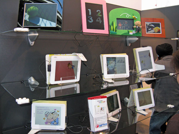Tra le novità esposte ricordiamo anche Story Book InColor un nuovo e-book reader con schermo a colori da 8″ in grado di riprodurre anche audio e animazioni. Story Book InColor è proposto principalmente come strumento di lettura per i più piccoli e anche come aiuto per i genitori nel raccontare le favole, arricchite con animazioni e audio. Il dispositivo è carino, peccato per il prezzo forse non in linea con il target: sarà disponibile a 199 euro subito dopo il CeBIT.