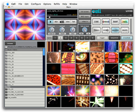 Cell 1.1 è l’ultima versione di un programma shareware (99$) per la creazione di effetti video in real-time progettato perDJ, VJ, designer di luci, musicisti, per la creazione di presentazioni, performance video e altro.