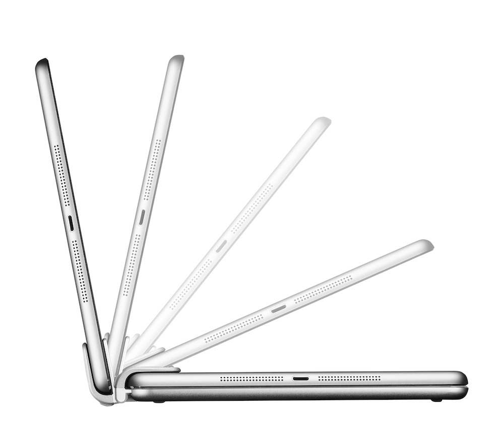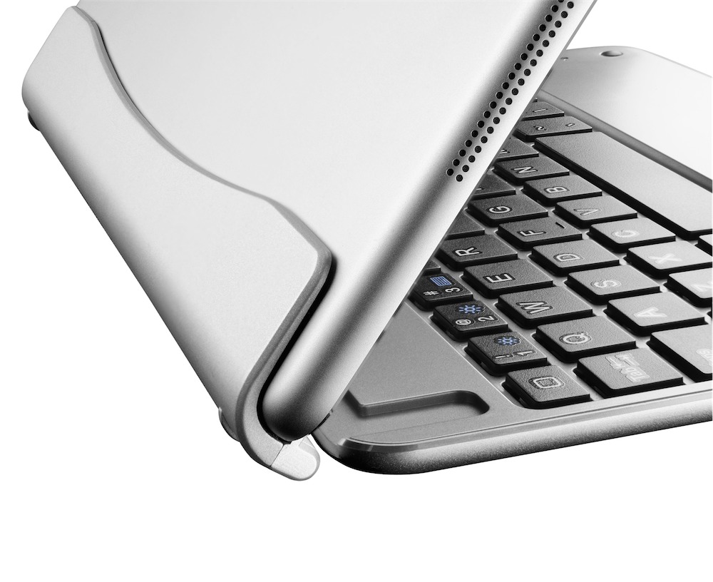 Così Cellularline Executive Pro è realizzata in alluminio ed integra uno snodo rigido che permette di regolare a piacere l’inclinazione di iPad Air, proprio come avviene da sempre per gli schermi dei notebook. Anche la base che integra la tastiera Bluetooth risulta molto simile a quella di un computer portatile: è rigida ed offre una tastiera con pulsanti di dimensioni standard e ben distanziati. Tutte queste soluzioni trasformano iPad Air in un notebook: una volta inserito il tablet in Cellularline Executive Pro l’utente può trasportarli sempre uniti, posizionarli sulle ginocchia, inclinare il tablet e lavorare sempre ed ovunque nella posizione più comoda per l’occasione.