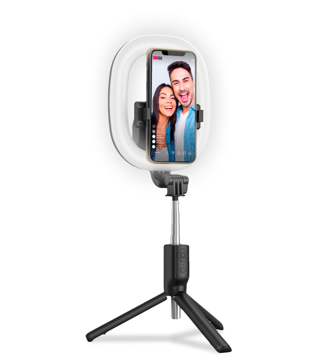 La prima si chiama Celly Clickring BT e viene pubblicizzata come una lampada anulare per smartphone da usare per migliorare i contenuti che vanno sui social. Non per niente viene venduta insieme a un’asta selfie dotata comunque di manico che, all’occorrenza, diventa un piccolo treppiede, in modo da poterla usare sia per le riprese in movimento, sia per quelle più statiche. Nel manico è incorporato un telecomando Bluetooth (da qui la sigla BT nel nome del prodotto) che permette di controllare lo smartphone a distanza sia per lo scatto di una foto, sia per l’avvio e l’arresto di una registrazione video.