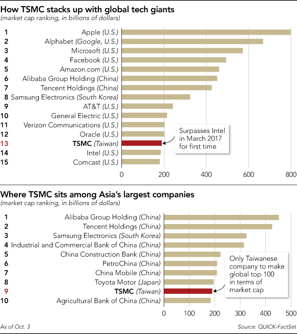 TSMC vanta circa 450 clienti; non solo Apple (il cliente più importante) ma anche nomi quali Qualcomm, Nvidia, Broadcom, MediaTek, HiSilicon Technologies (Huawei) e NXP che controllano il 56% del mercato delle fonderie mondiali.