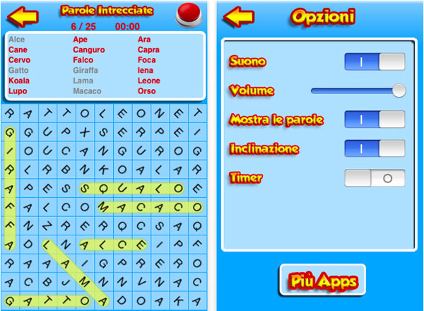Non occorre essere dei maghi dell’enigmistica per rimanere affascinati dal classico gioco in cui occorre scoprire tutte le parole nascoste in mezzo a una griglia di lettere che a prima vista sembrano solamente una accozzaglia dell’alfabeto. Con Parole Intrecciate questo classico dell’enigmistica sbarca su iPhone e touch mettendo a in tasca all’utente ben 149 puzzle da risolvere. Oltre alla possibilità di scegliere tra 23 temi diversi tra cui Celebrità , Film, Sport e così via, è possibile giocare con griglie di 11×11 oppire 15×15 più una serie di opzioni per rendere il gioco più facile o più difficile, a seconda dei gusti e delle preferenze dell’utente.