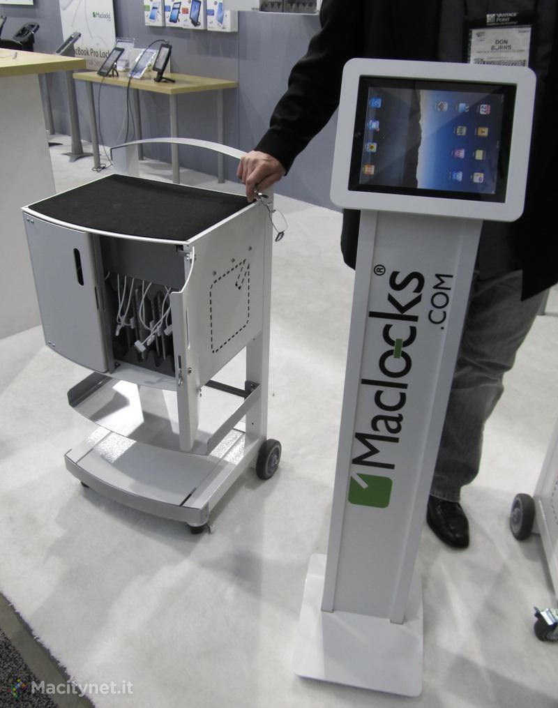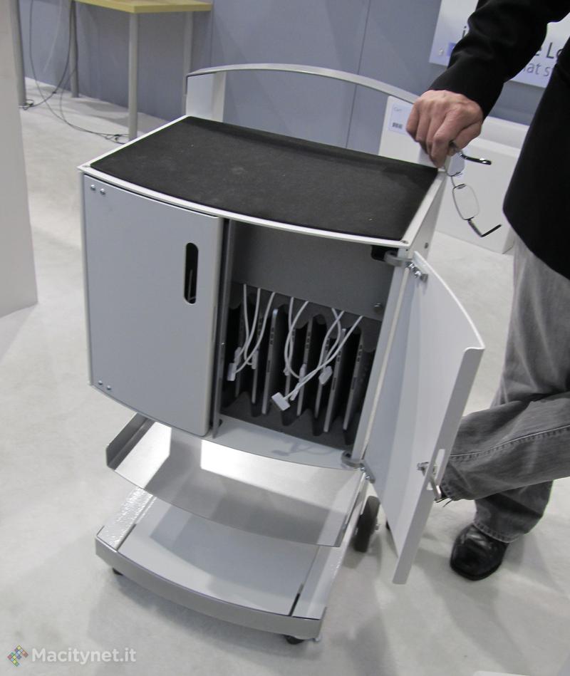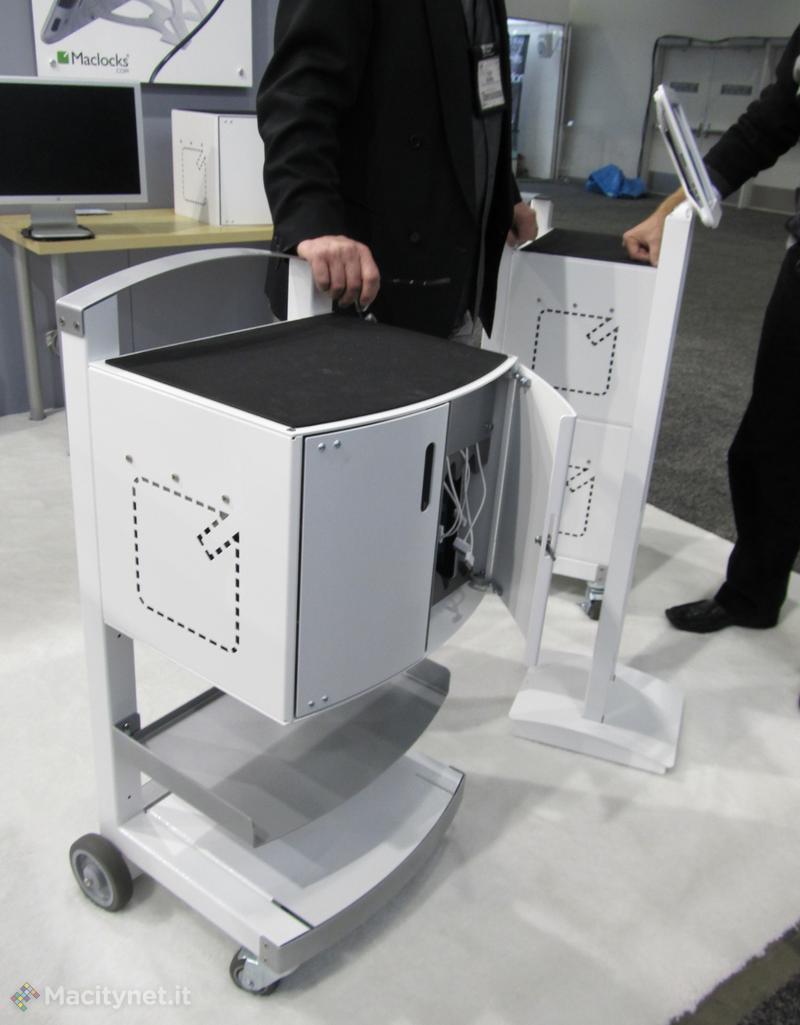 La versione “Solo” costa 799 Dollari prevede una chiave di sicurezza, può essere montata a muro o su un carrello e il design modulare permette di impilare due accessori uno sull’altro. La versione “Uno” è in vendita a 1.199$, la “Due” a 1.599 Dollari: anche queste prevedono lucchetto, piano di appoggio e ruote. I carrelli in questione possono ospitare tablet e notebook vari (fino a 13”).