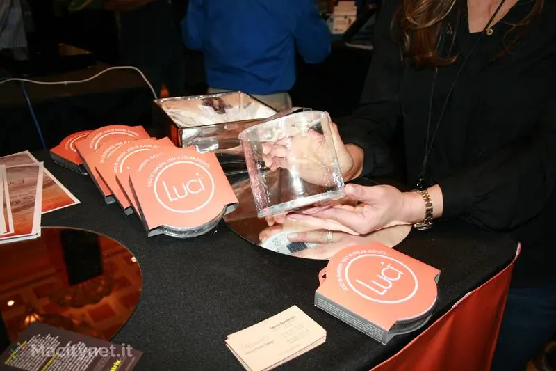 Luci è un’innovativa soluzione a energia solare mostrata al Consumer Electronics Show di Las Vegas dalla società Micro Power Design. Se siete alla ricerca di una luce ecologica per il campeggio, una lanterna per una festa o una semplice lampada di emergenza, questo curioso accessorio potrebbe essere quello di cui avete bisogno. È una lanterna pieghevole e gonfiabile di piccole dimensioni (12.5 cm di diametro), resistente all’acqua con integrata la luce LED a energia solare per la quale è possibile scegliere tre impostazioni: bagliore fioco, luminosità massima o luce di emergenza.