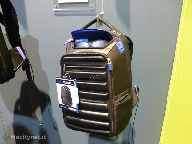 Lo stand Tylt del CES è sempre affollatissimo: qui infatti sono in mostra gli accessori dal design originale, non solo belli da vedere ma che soprattutto semplificano la vita degli utenti, creati da questa intraprendente società californiana. Oltre ai cavi piatti in silicone anti-groviglio e agli intelligenti alimentatori e cover, uno dei nuovi prodotti Tylt più ammirati qui a Las Vegas è senza dubbio il nuovissimo zaino Energi Power Backpack con batteria integrata.