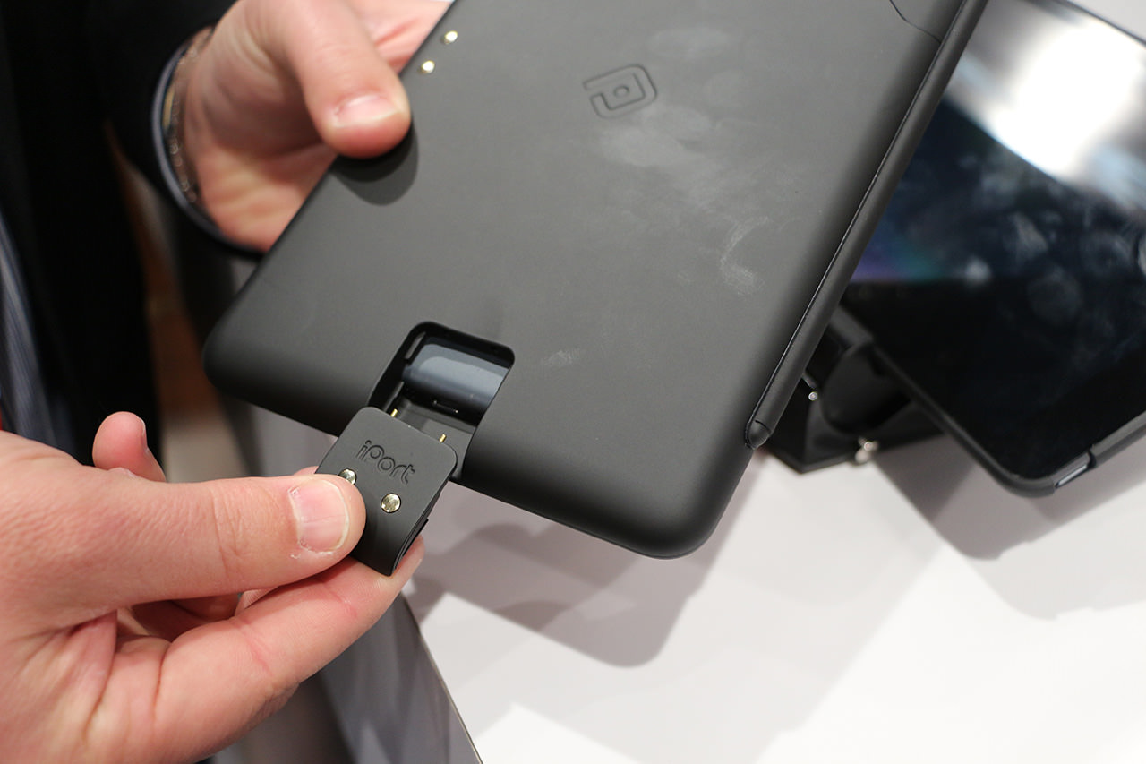 Questi prodotti, sono studiati per essere collocati e non più tolti. A questo scopo presentano un sistema di ricarica a contatto, due connettori collocati uno sul lato corto e uno sul lato lungo che sfruttano un dock di ricarica. I due connettori portano alla porta Lightning, fornendo così energia al tablet.