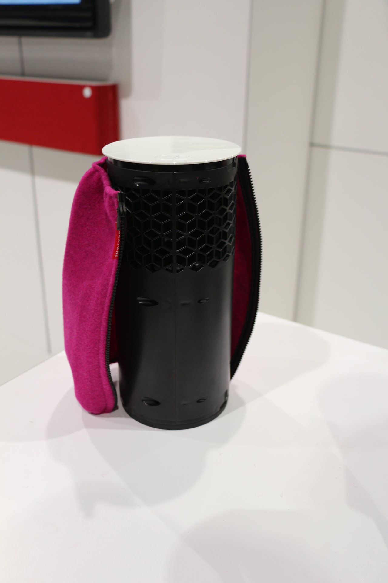 Si tratta di diffusori compatibili con le più moderne tecnologie (Airplay e DLNA) studiati come elementi di arredo (possono essere appesi o appoggiati su un ripiano) che però sono caratterizzati da un originale mix di materiali sintetici e naturali. La copertura è infatti in lana italiana tinta a colori brillanti che conferisce loro un look esclusivo e particolarissimo.