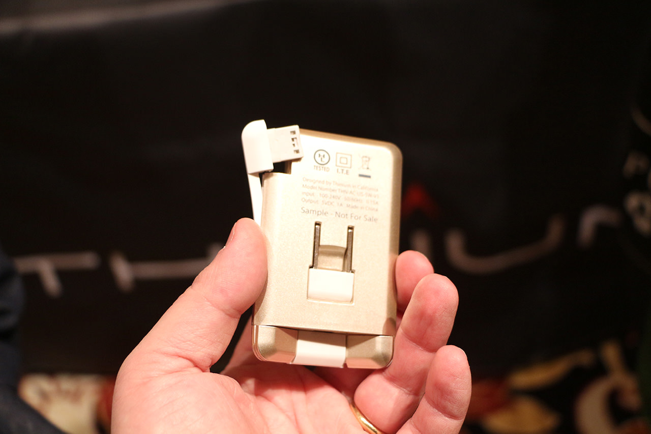Il primo è un mini caricabatterie da muro che si inserisce in una spina e sorregge anche iPhone. A differenza di altri prodotti simili, il Thinium Lightning (questo il nome del prodotto) ha però anche un cavo USB. In pratica una volta che non si fosse in grado di trovare una spina, sarà possibile usare il caricabatterie come se fosse un cavo e potremo collegare l’iPhone o l’iPad ad un computer.