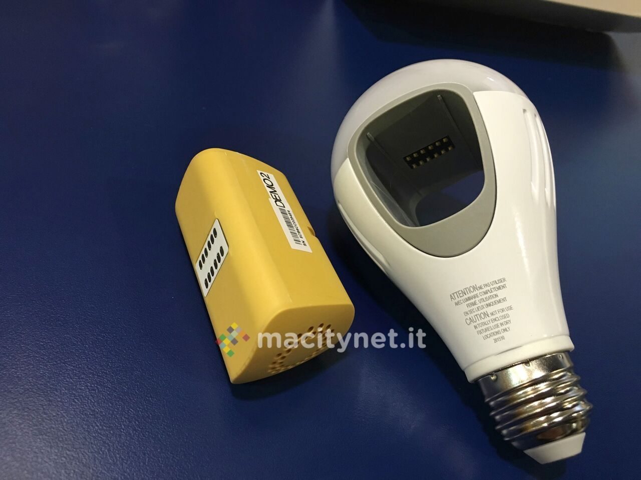 Si tratta di un sistema di illuminazione temporaneo che può essere controllato manualmente, o automaticamente, da un’applicazione iOS o Android. Le lampade smart, allora, possono essere accese automaticamente ad orari pre impostati dall’utente s base settimanale, in modo da simulare sempre la presenza di qualcuno in casa. Per alcuni minuti, o ore del giorno, può accendersi quella in cucina, mentre in altre fasce orarie è possibile accendere quella in salotto. Si tratta di lampade da 10 Watts, con una vita stimata in 25,000 ore di accensione, con un output di 800 lumenè una temperatura di colore soft white a 3000K. A livello estetico e dimensionale non si discostano poi troppo da luci tradizionali, con un peso per ciascuna di 180 grammi.