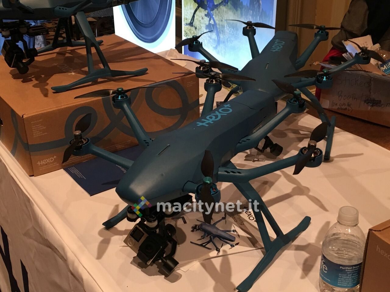 Presente al CES 2016 Hexo+, il drone che si guida da solo e segue il padrone nelle sue gesta sportive. Macitynet ve ne ha parlato più volte nel corso dei mesi scorsi, e adesso che è finalmente disponibile all’acquisto lo ha anche fotografato tra gli stand della manifestazione a Las Vegas.