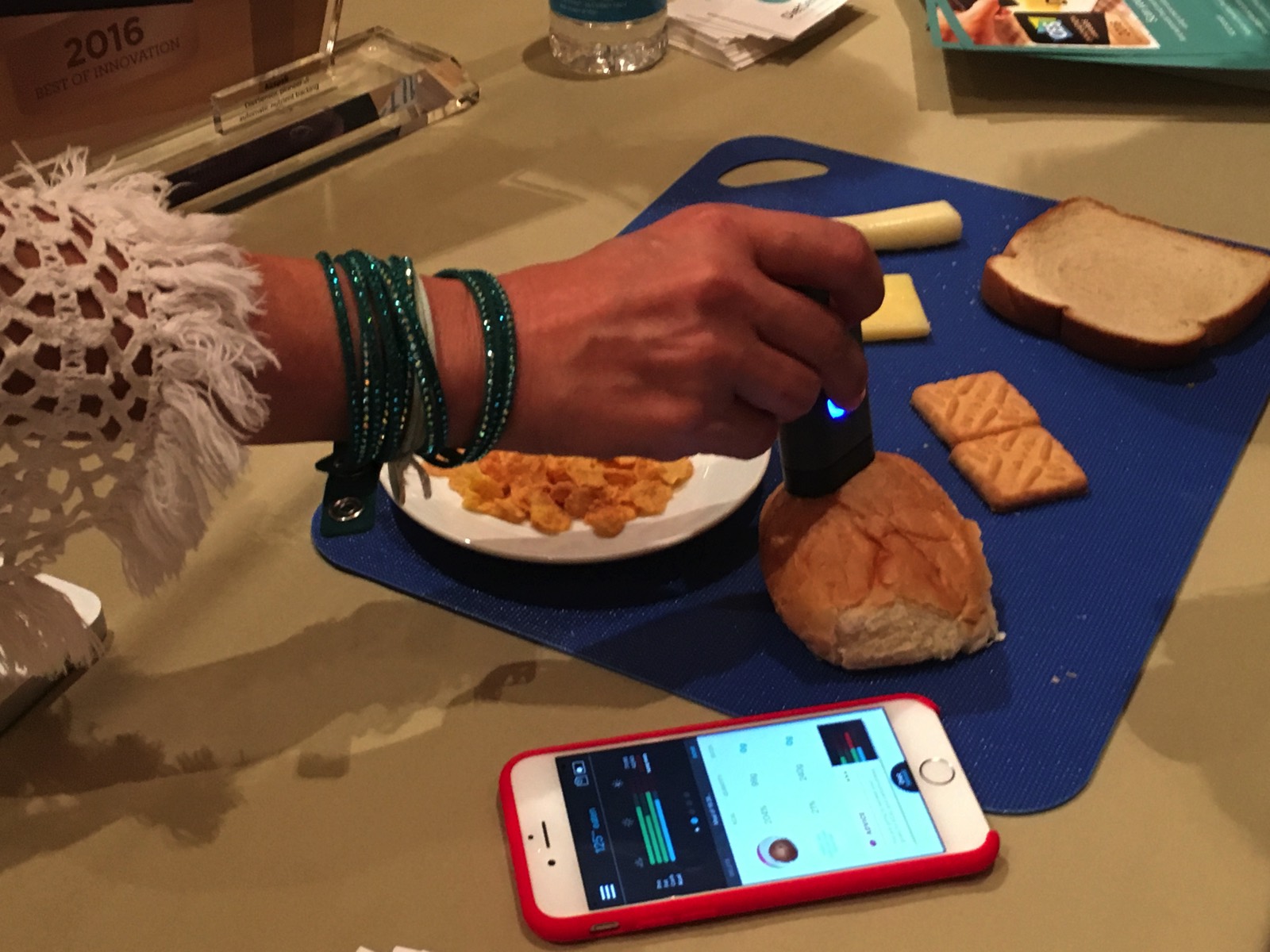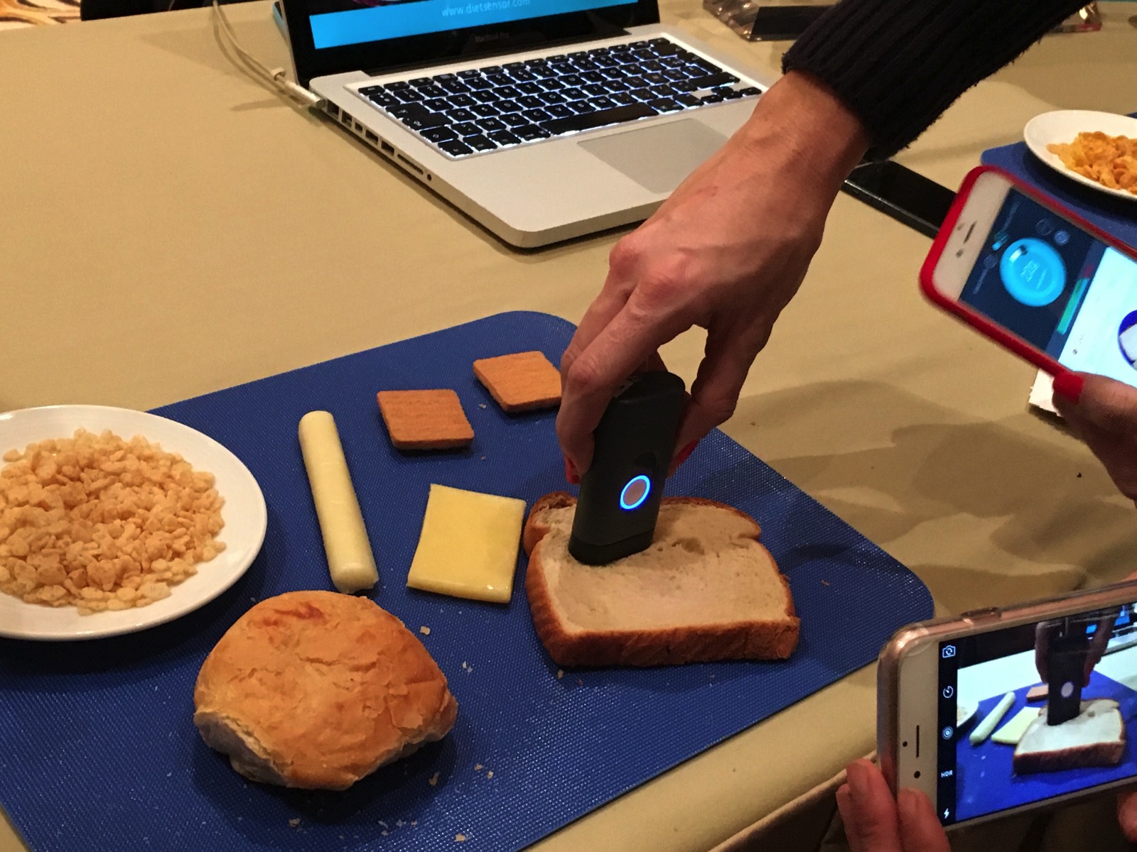 La coppia ha sviluppato un’applicazione nutrizionale e ha lavorato con la società israeliana Consumer Physics per un gadget che utilizza la scienza per automatizzare il processo. Il prototipo utilizza la spettroscopia, che evidenzia come le molecole di cibo vibrino in modo unico quando interagiscono con la luce.