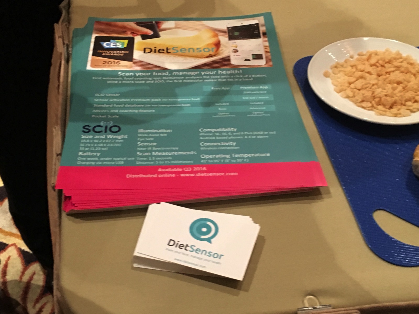 La start-up francese DietSensor ha lanciato al CES 2016 il sensore molecolare Bluetooth SCiO. Il gadget utilizza uno spettroscopio vicino all’infrarosso per determinare la composizione chimica di cibi e bevande. Grazie alla app abbinata per iPhone, Scio è in grado di analizzare le sostanze in base e come le loro molecole interagiscono con la luce, informando così l’utente su ciò che sta per mangiare.
