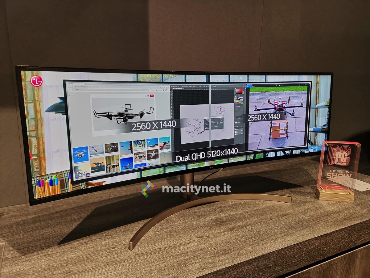 Il nuovo monitor UltraWide è dotato di un ampio schermo curvo con formato 32:9, che a detta del produttore garantisce “un’eccellente qualità nelle immagini”. Con il suo taglio cinematografico, il modello 49WL95 è una soluzione in grado di sostituire il set-up multi-schermo. Lo spazio extra a disposizione, fornito dal display da 49”, e le particolari proporzioni rendono questo monitor la soluzione ideale per il multitasking. Con un numero effettivo di pixel pari a 5120×1440 (equivalente a due monitor da 27” Quad High Definition affiancati) e di 108 pixel per pollice (PPI), è in grado di garantire nitidezza, per documenti facili da leggere, e video e immagini facili da modificare.